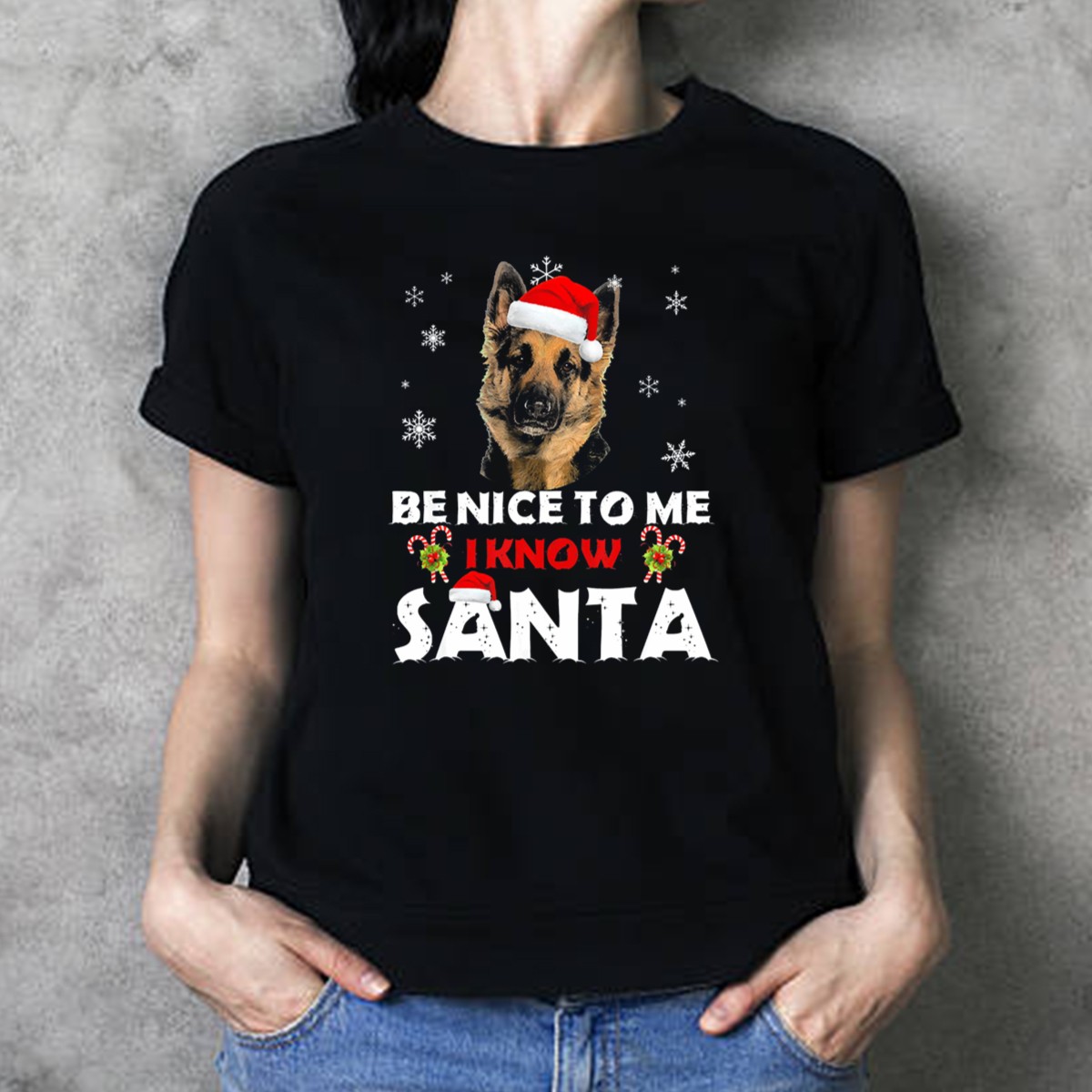 Celebrate the holiday season with our “Be Nice To Me I Know Santa” German Shepherd Christmas Snowflakes T-Shirt! Perfect for dog lovers and festive spirits, this shirt combines a playful design with a classic fit that’s ideal for casual gatherings, themed events, or simply spreading cheer during daily wear. Made in the USA, this fan-made graphic tee showcases your love for German Shepherds and adds a unique touch to your winter wardrobe.