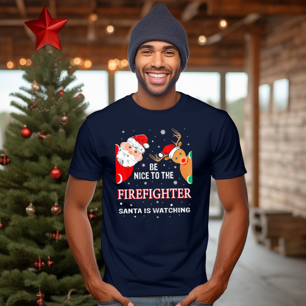 Embrace the festive spirit with our “Be Nice To The Firefighter Santa Is Watching” T-shirt, perfect for holiday gatherings, themed events, or just spreading cheer in your everyday life. This unique fan-made design combines humor and holiday charm, making it an ideal gift for firefighters, Christmas lovers, or anyone who enjoys a playful twist on traditional festive attire. Crafted for comfort and style, this shirt is sure to be a favorite during the holiday season and beyond.
