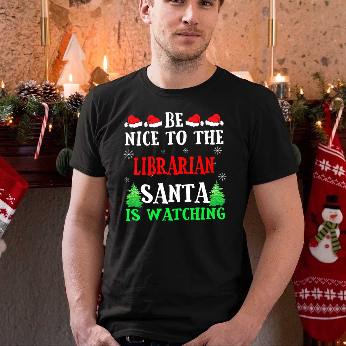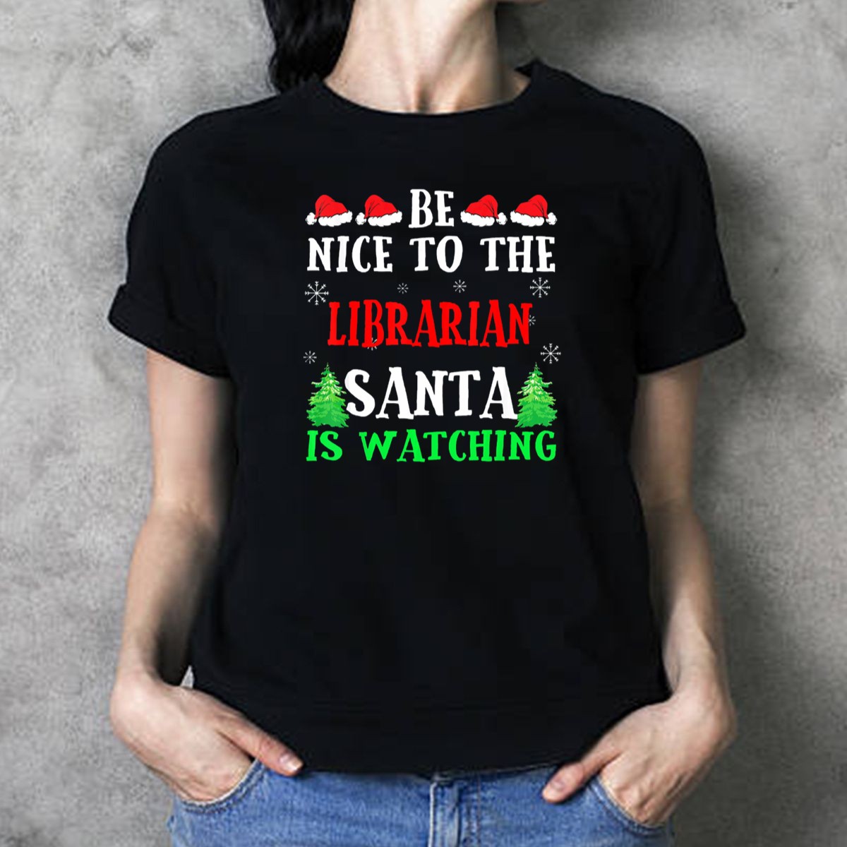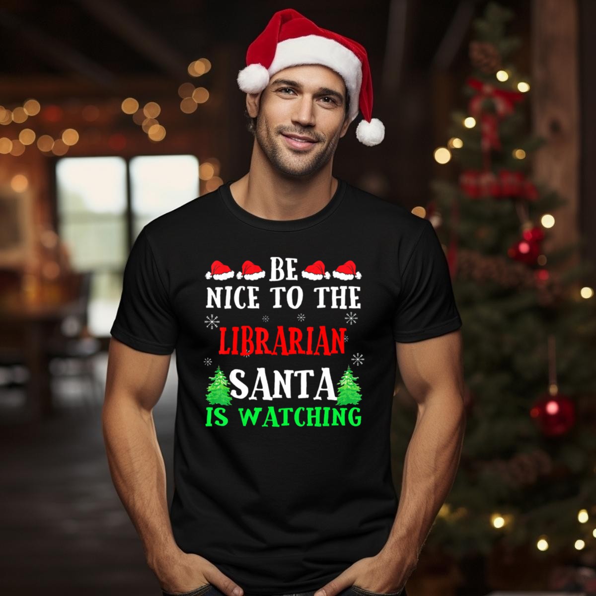 Embrace the holiday spirit with our delightful “Be Nice To The Librarian Santa Is Watching” T-shirt, perfect for book lovers and festive gatherings alike. This fun and whimsical design features charming Santa hats, snowflakes, and Christmas trees, making it an ideal choice for casual wear, themed events, or simply spreading cheer during the holiday season. Crafted with a fan-made design printed right here in the USA, this shirt combines comfort with a playful message that’s sure to bring smiles all around.