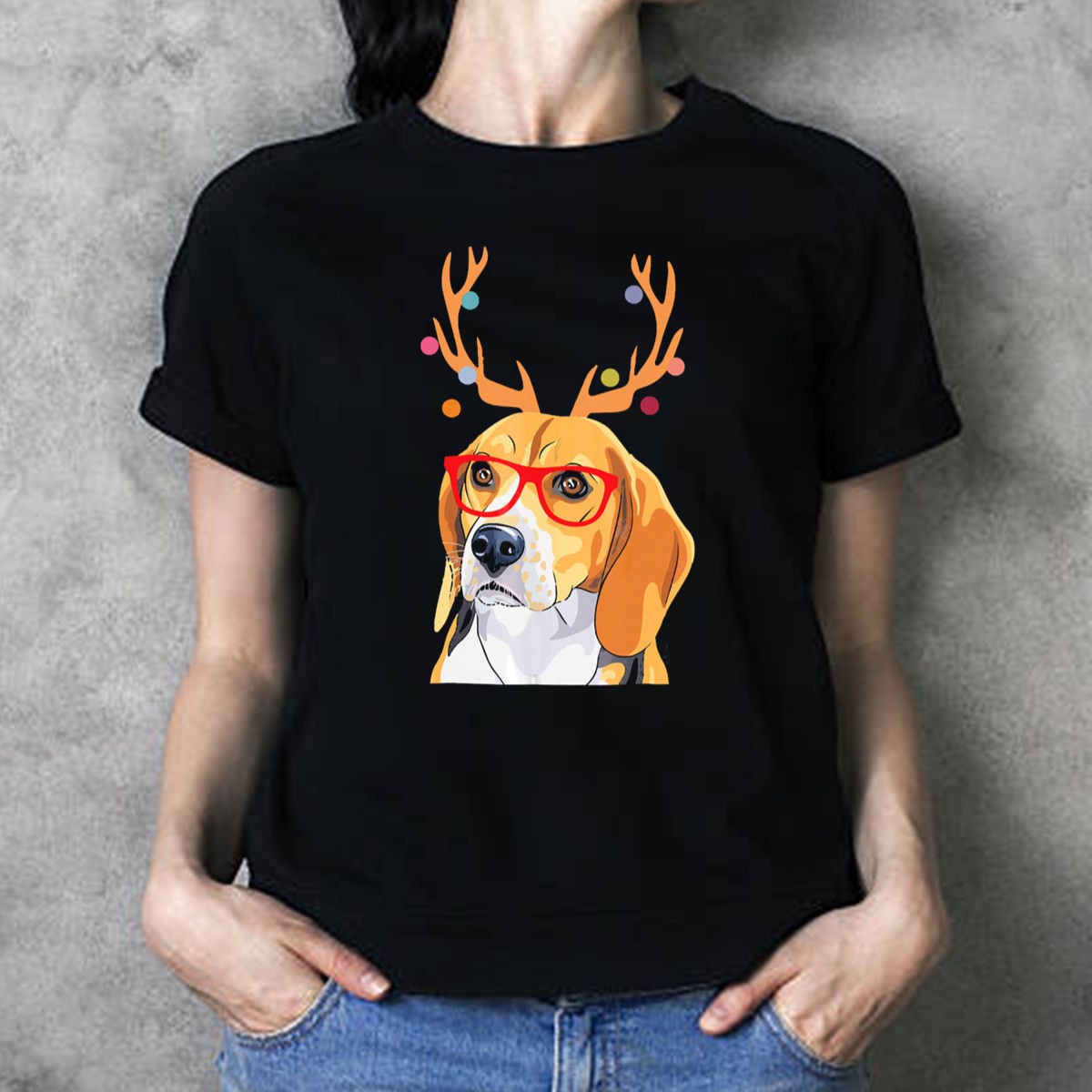 Be the first to review “Beagle Christmas Funny Dog With Antlers And Glasses T-Shirt”