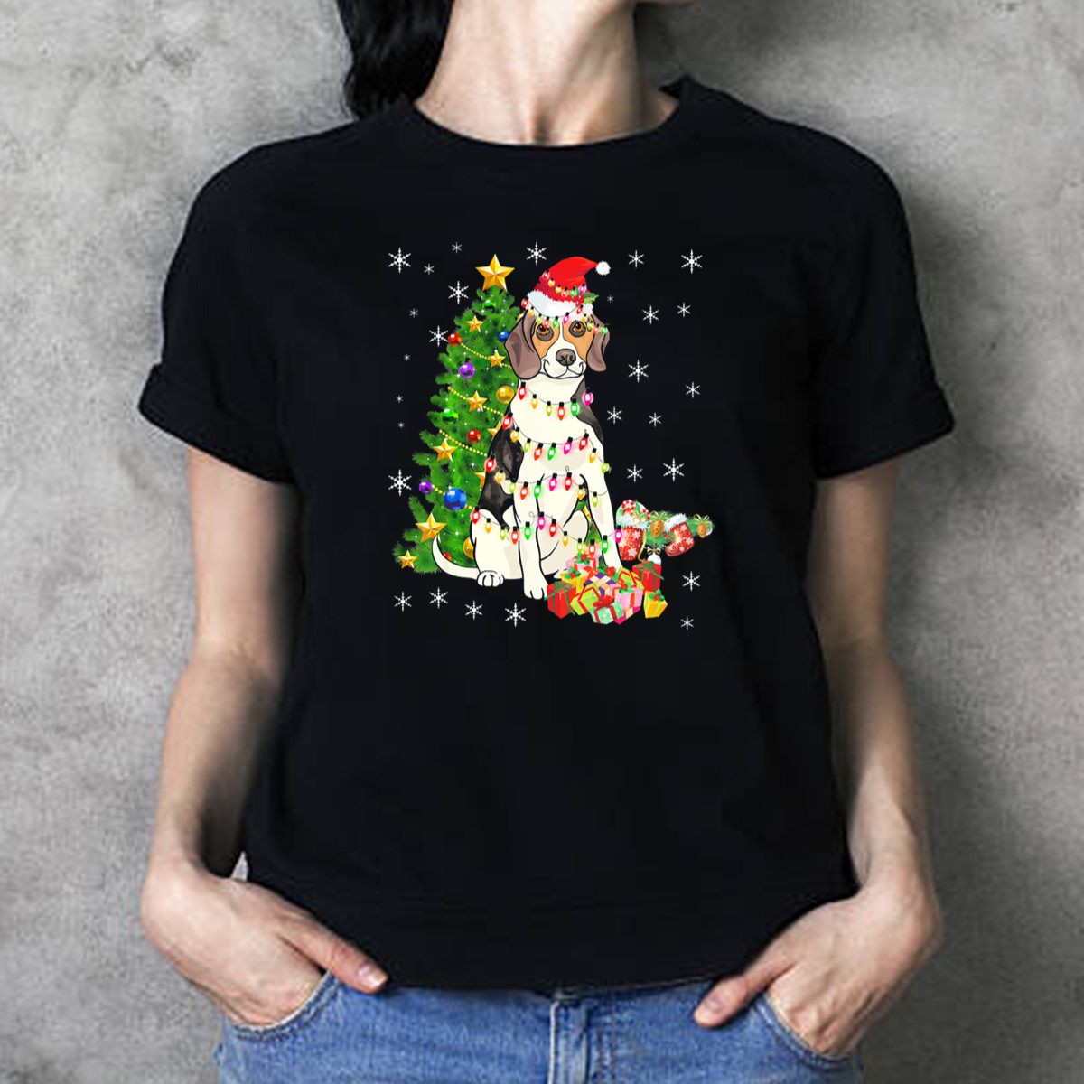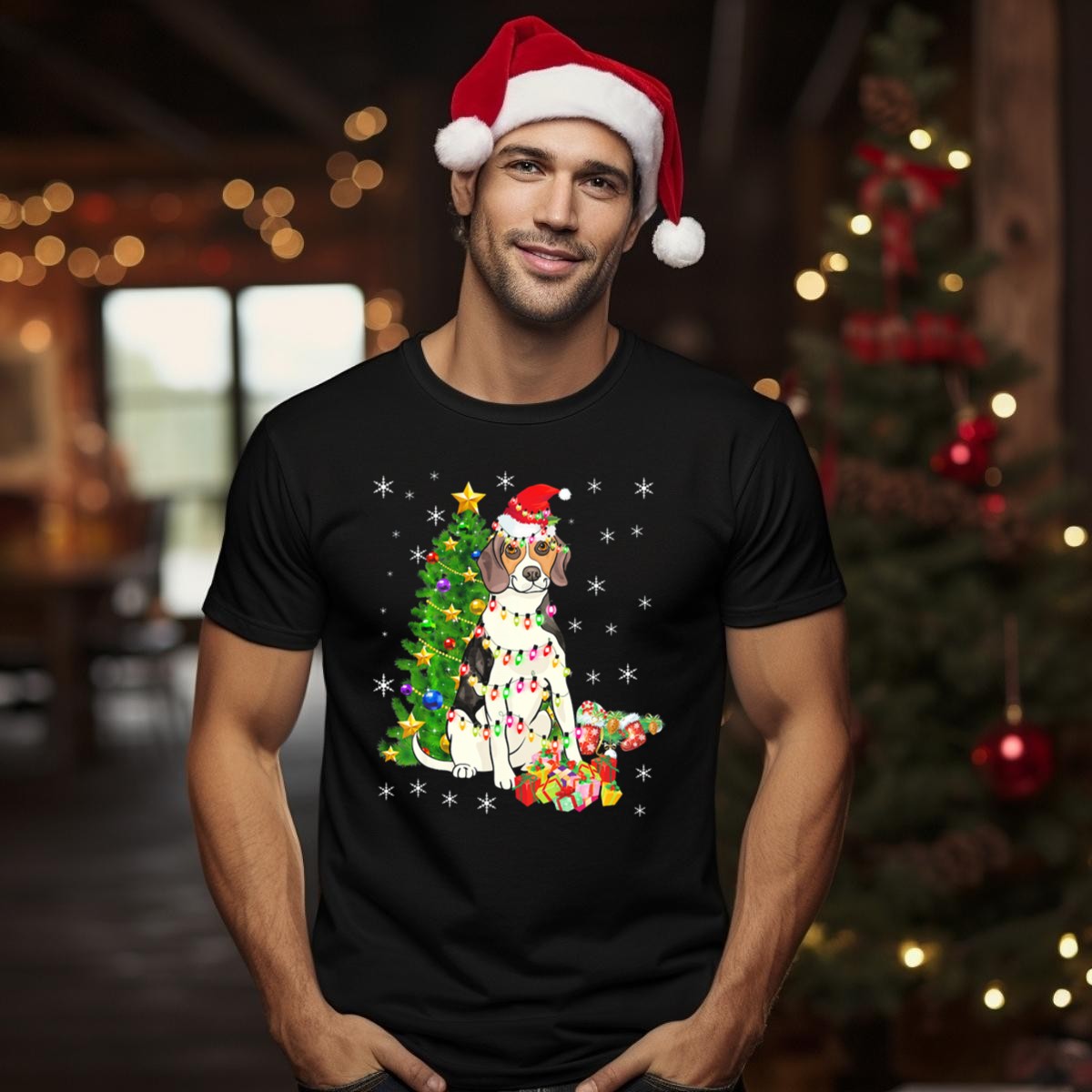 Celebrate the festive season with our Beagle Christmas Lights Santa Hat Costume T-Shirt, perfect for dog lovers and holiday enthusiasts alike. This charming design features an adorable beagle decked out in a festive Santa hat surrounded by twinkling Christmas lights, making it an ideal choice for casual wear, themed events, or daily holiday cheer. Made for comfort and style, this fan-made shirt is proudly printed in the USA, ensuring you stand out while spreading joy during the holidays.