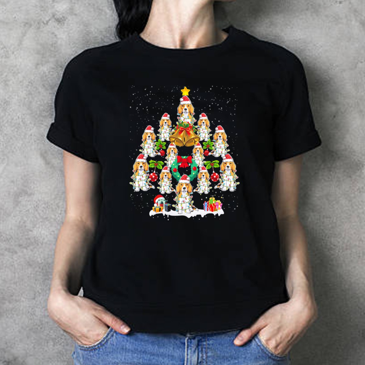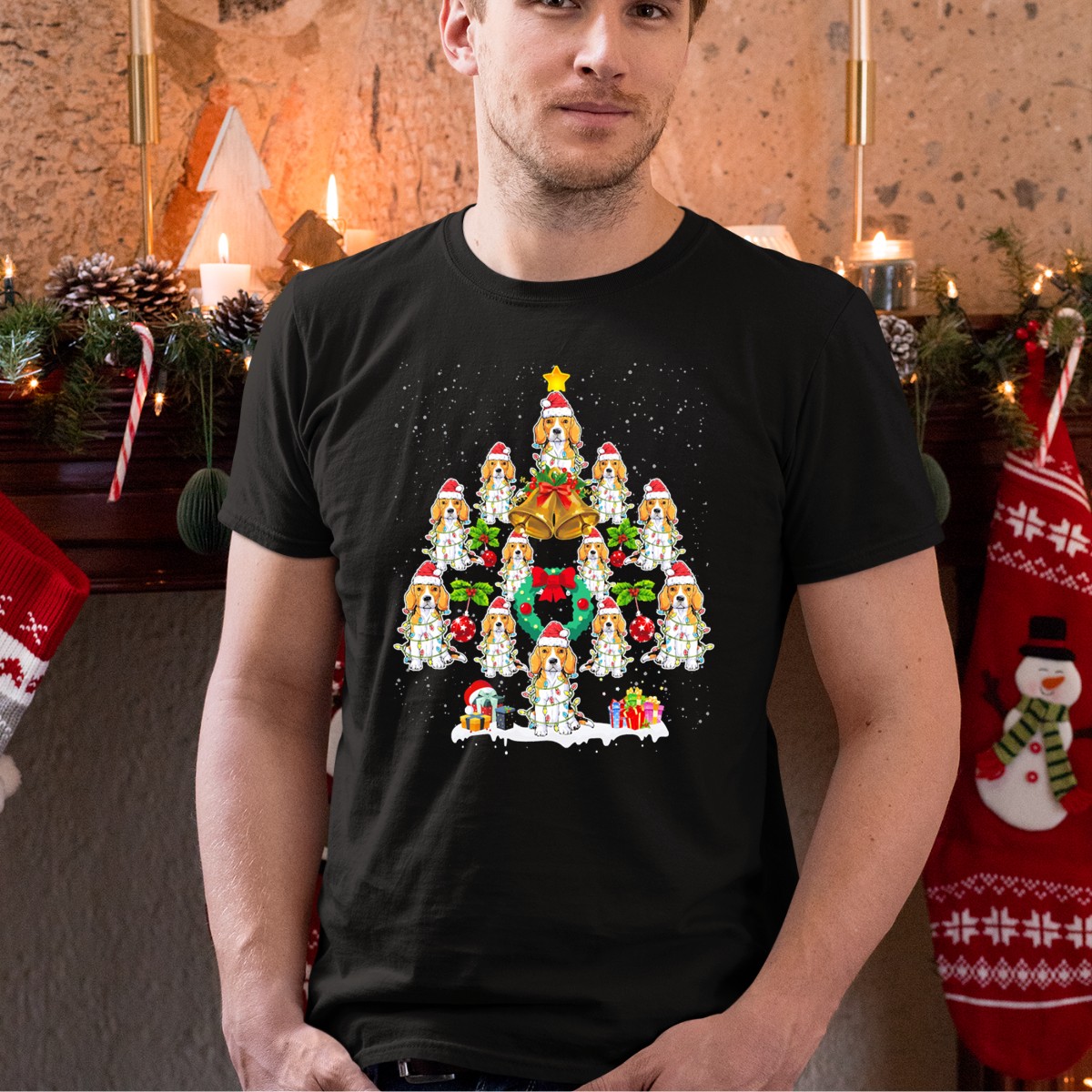 Beagle Christmas Tree With Santa Hats And Holiday Decorations T-Shirt