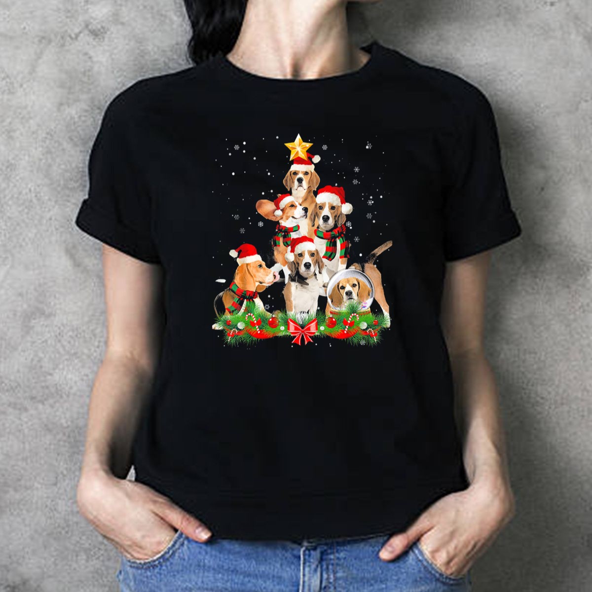 Celebrate the festive season in style with our Beagle Christmas Tree T-Shirt, featuring an adorable graphic of beagles adorned with Santa hats and surrounded by whimsical snowflakes. Perfect for dog lovers and holiday enthusiasts alike, this shirt is a fantastic choice for casual gatherings, themed events, or simply spreading cheer in your daily wear. Made with a fan-made design printed in the USA, it offers a unique and playful twist on holiday attire that will surely bring smiles to everyone around you.
