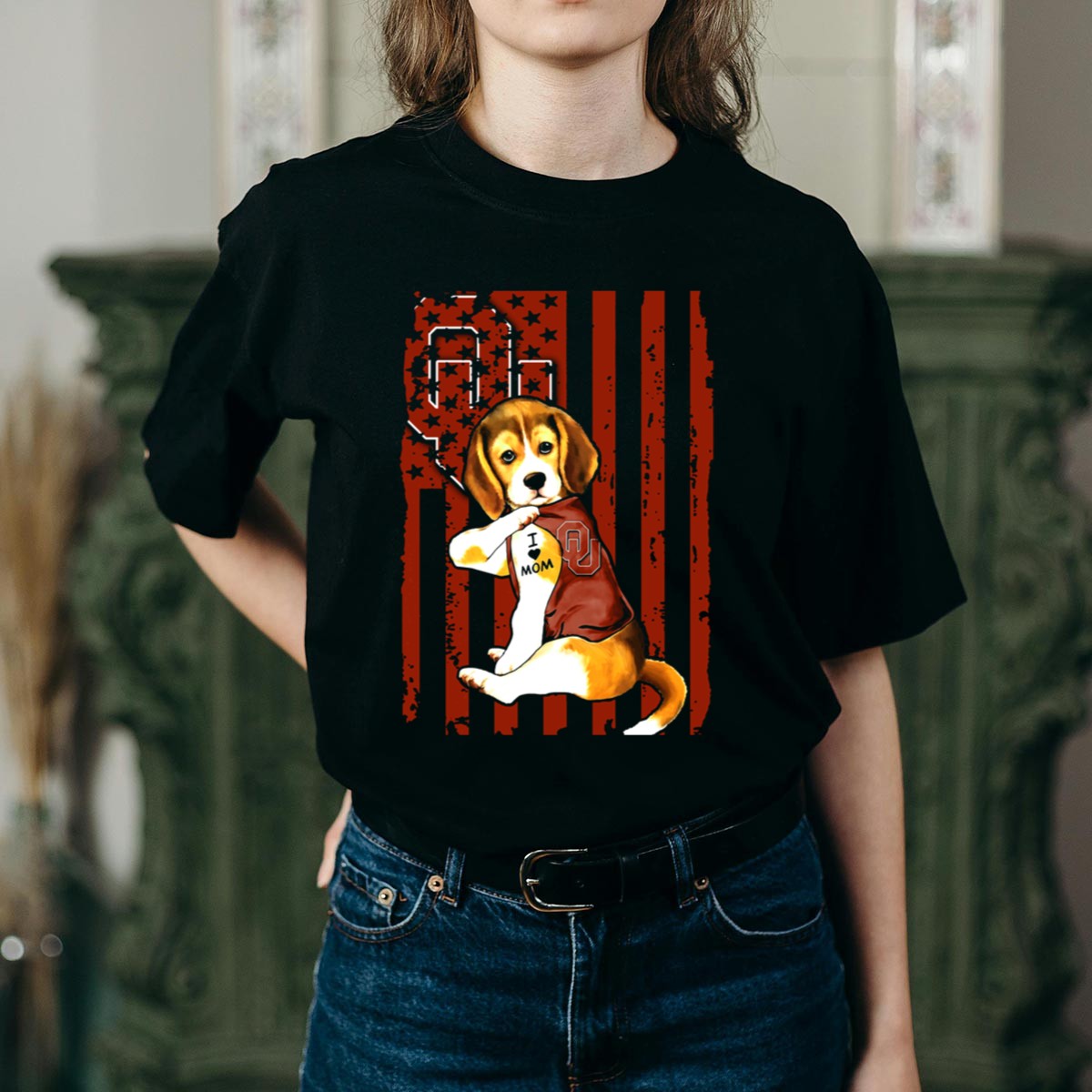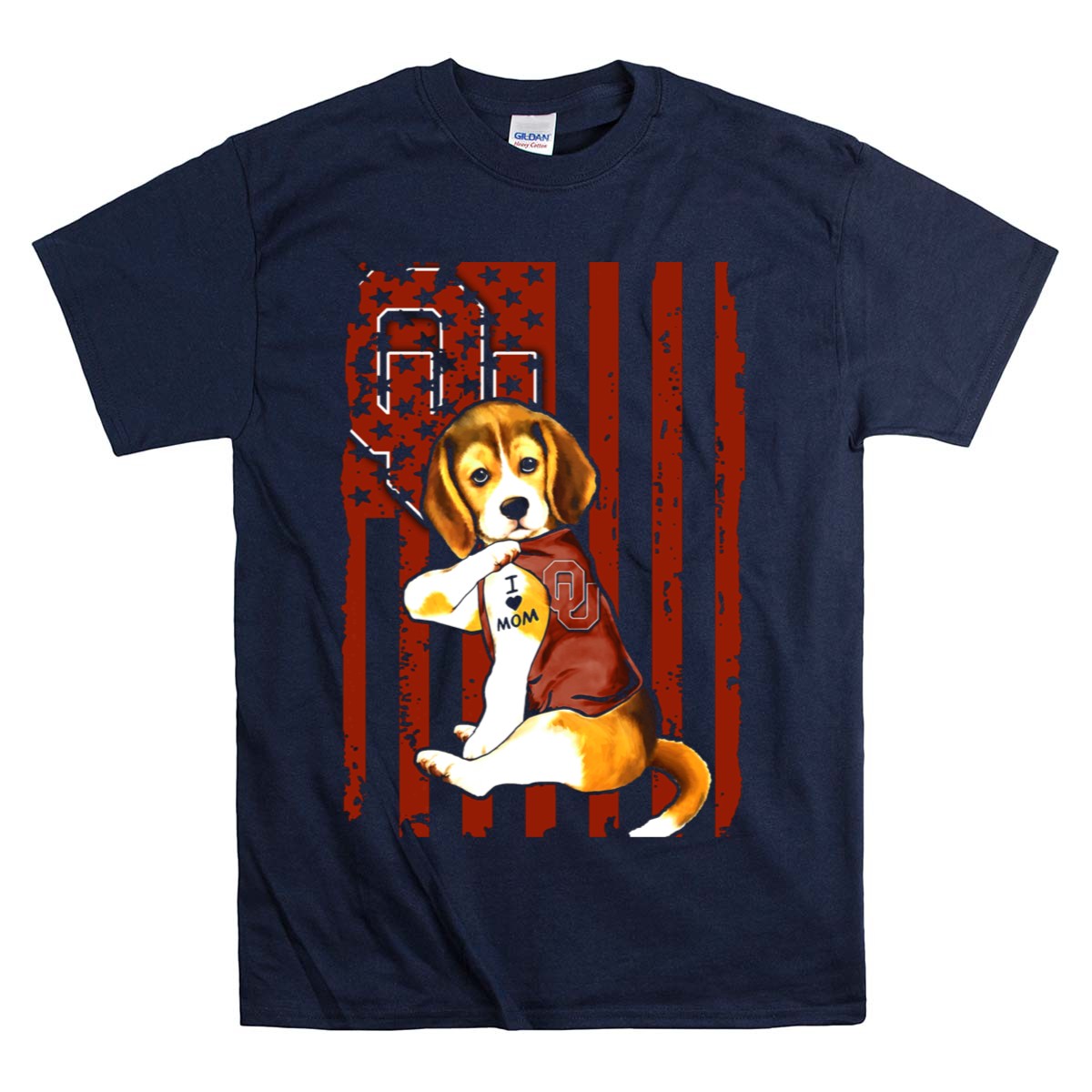 Beagle Puppy I Love Mom Oklahoma Sooners Ou Red Stripes Stars T-Shirt