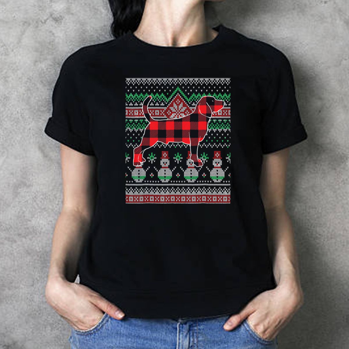 Beagle Red Plaid Christmas Dog Sweater Snowman T-Shirt