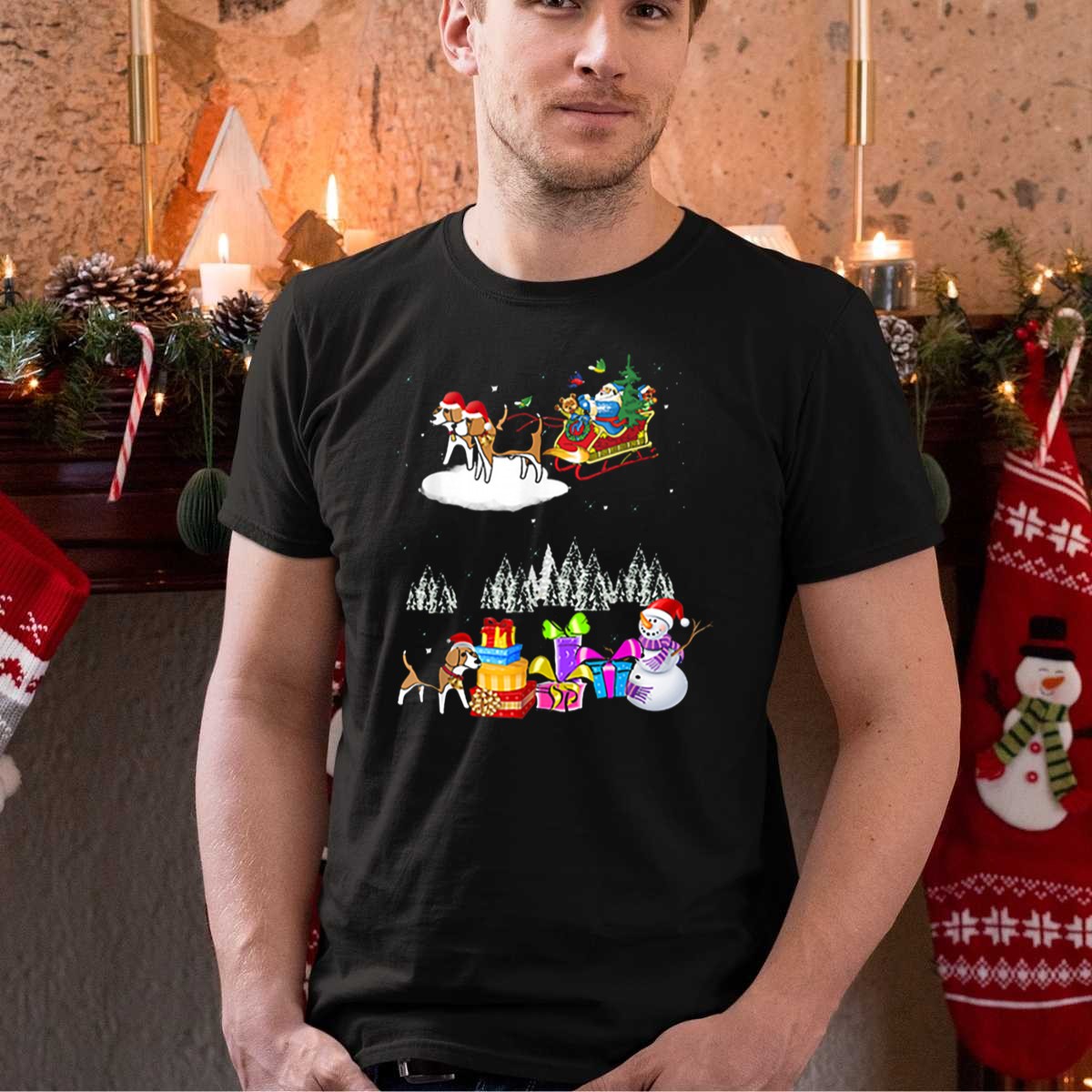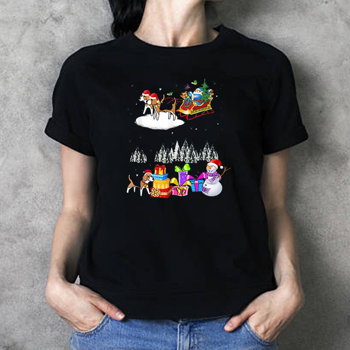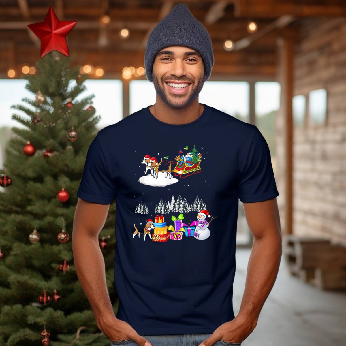 Celebrate the festive season in style with our Beagle Reindeer Christmas T-Shirt! This playful design features a charming beagle alongside whimsical holiday elements like Santa’s sleigh, snowmen, and twinkling trees, making it a perfect choice for dog lovers and holiday enthusiasts alike. Ideal for casual wear, themed events, or simply spreading Christmas cheer, this shirt is a delightful addition to your all-season wardrobe.