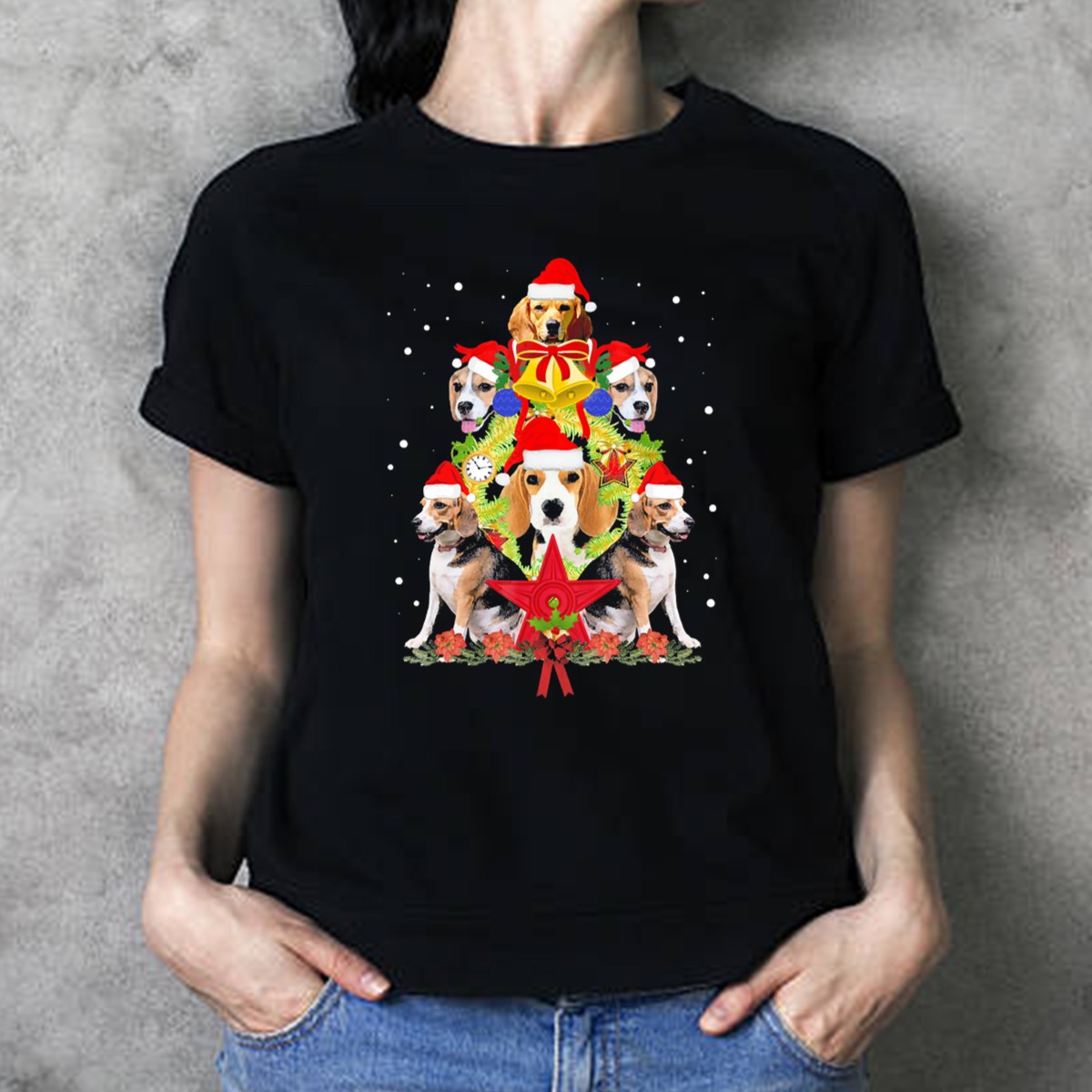 Be the first to review “Beagle Santa Hats Christmas Tree With Clock And Flowers T-Shirt”