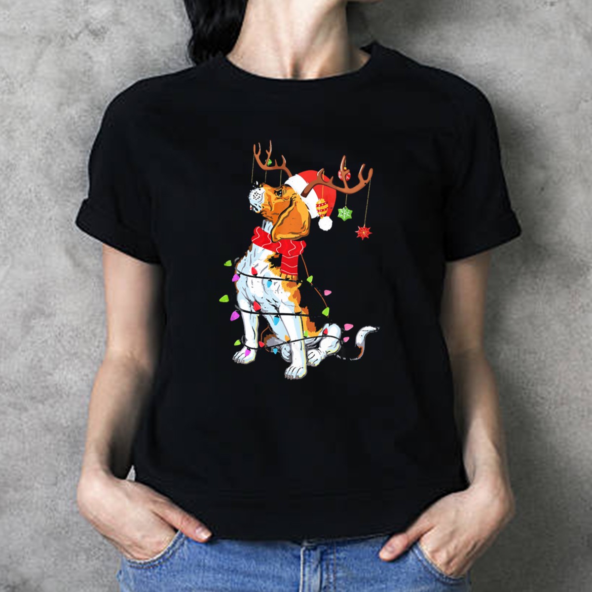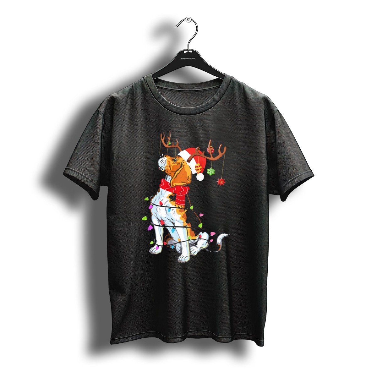 Get into the festive spirit with our adorable Beagle With Reindeer Antlers Wrapped In Christmas Lights And Santa Hat T-Shirt! Perfect for dog lovers and holiday enthusiasts alike, this charming tee is ideal for casual wear, themed events, or simply spreading Christmas cheer. Made with a unique fan-made design printed in the USA, it’s a delightful addition to your all-season wardrobe that showcases your love for pets and the holiday season.