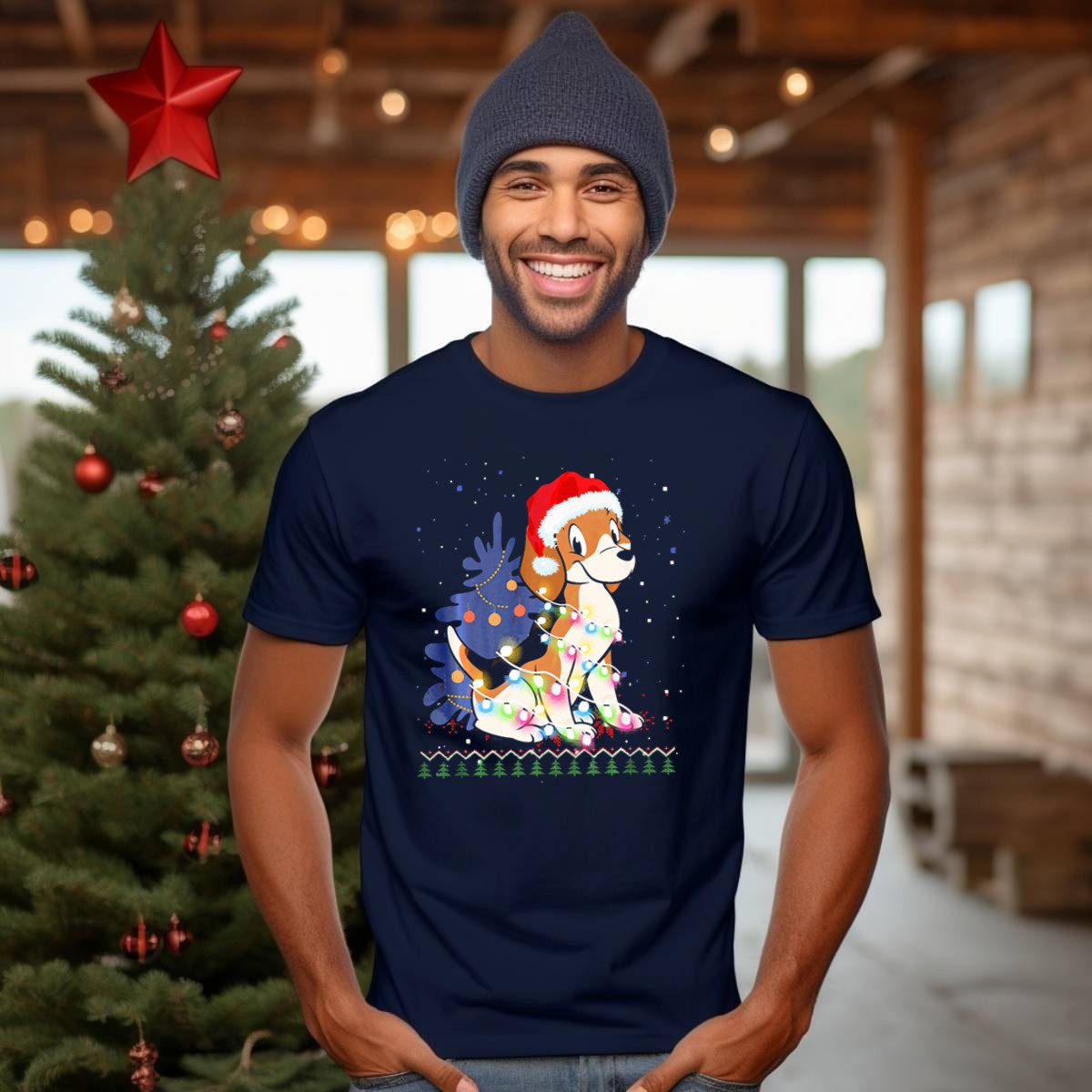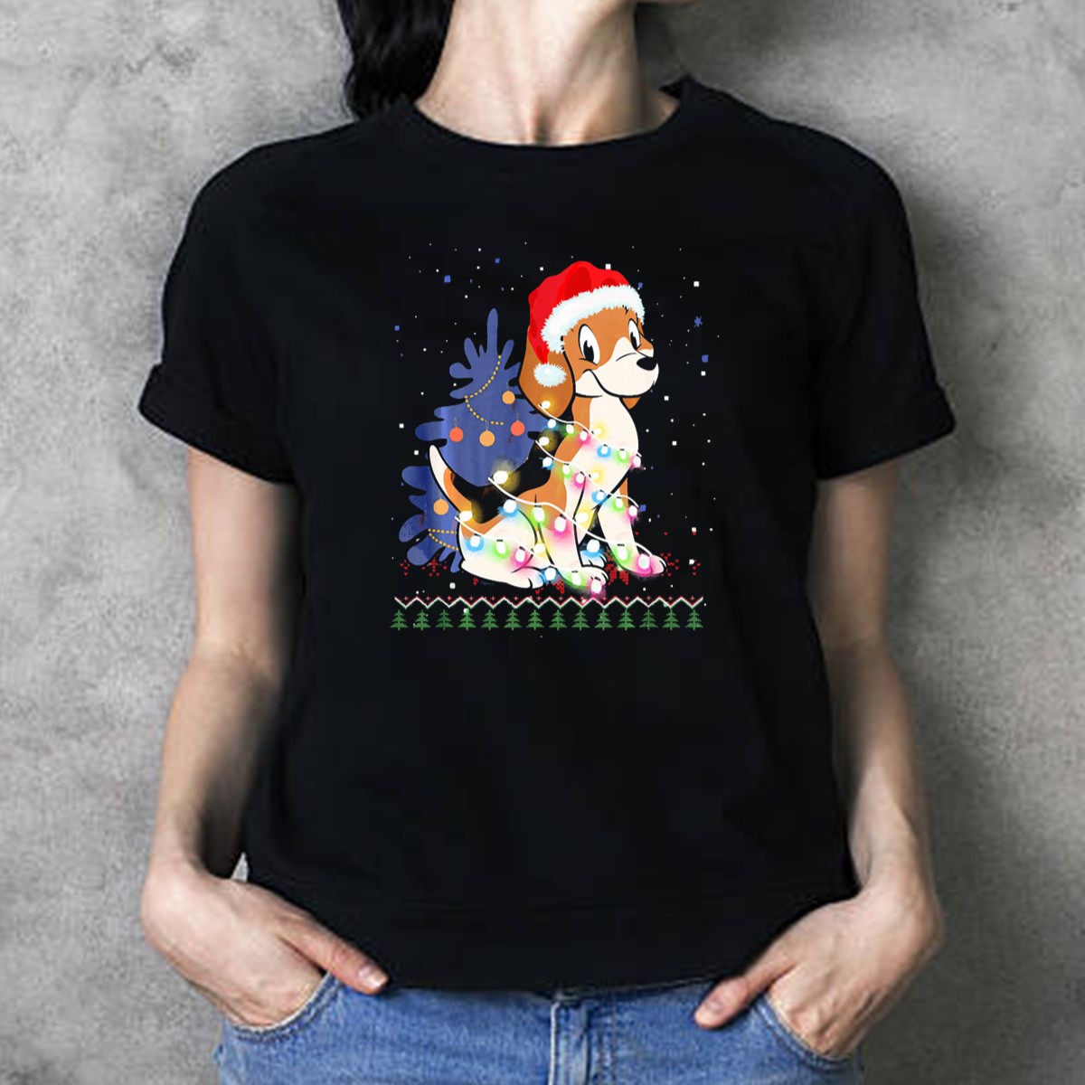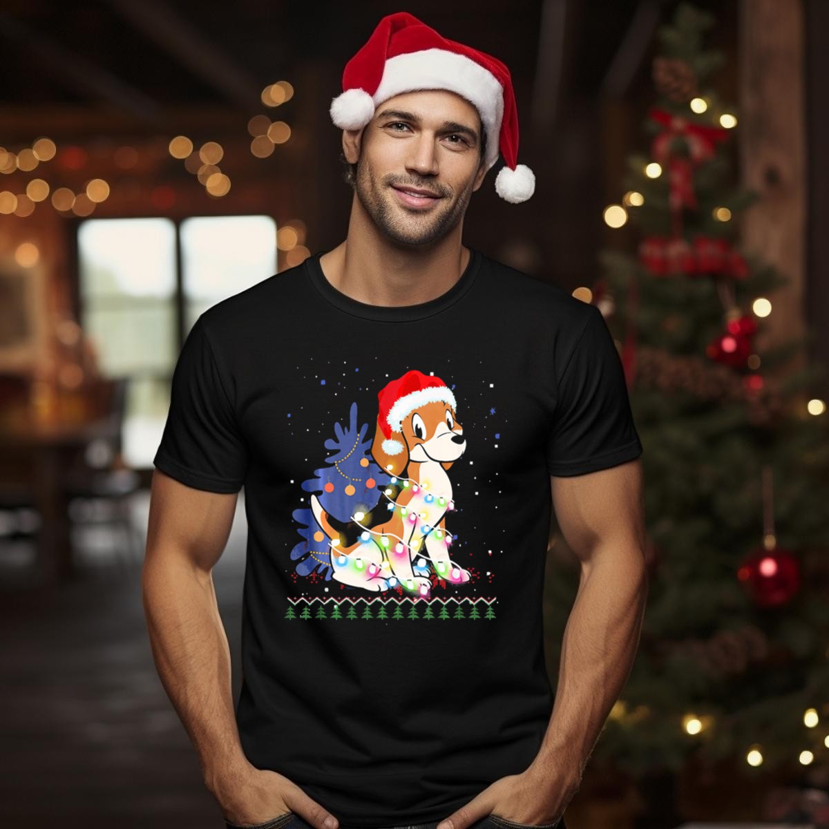 Celebrate the joy of the holiday season with our Beagle Wrapped In Christmas Lights With Santa Hat T-shirt! Perfect for dog lovers and festive spirits alike, this shirt is ideal for casual outings, themed events, and daily wear during the most wonderful time of the year. Its unique fan-made design, printed in the USA, features an adorable beagle adorned with Christmas lights, making it a delightful addition to your holiday wardrobe.