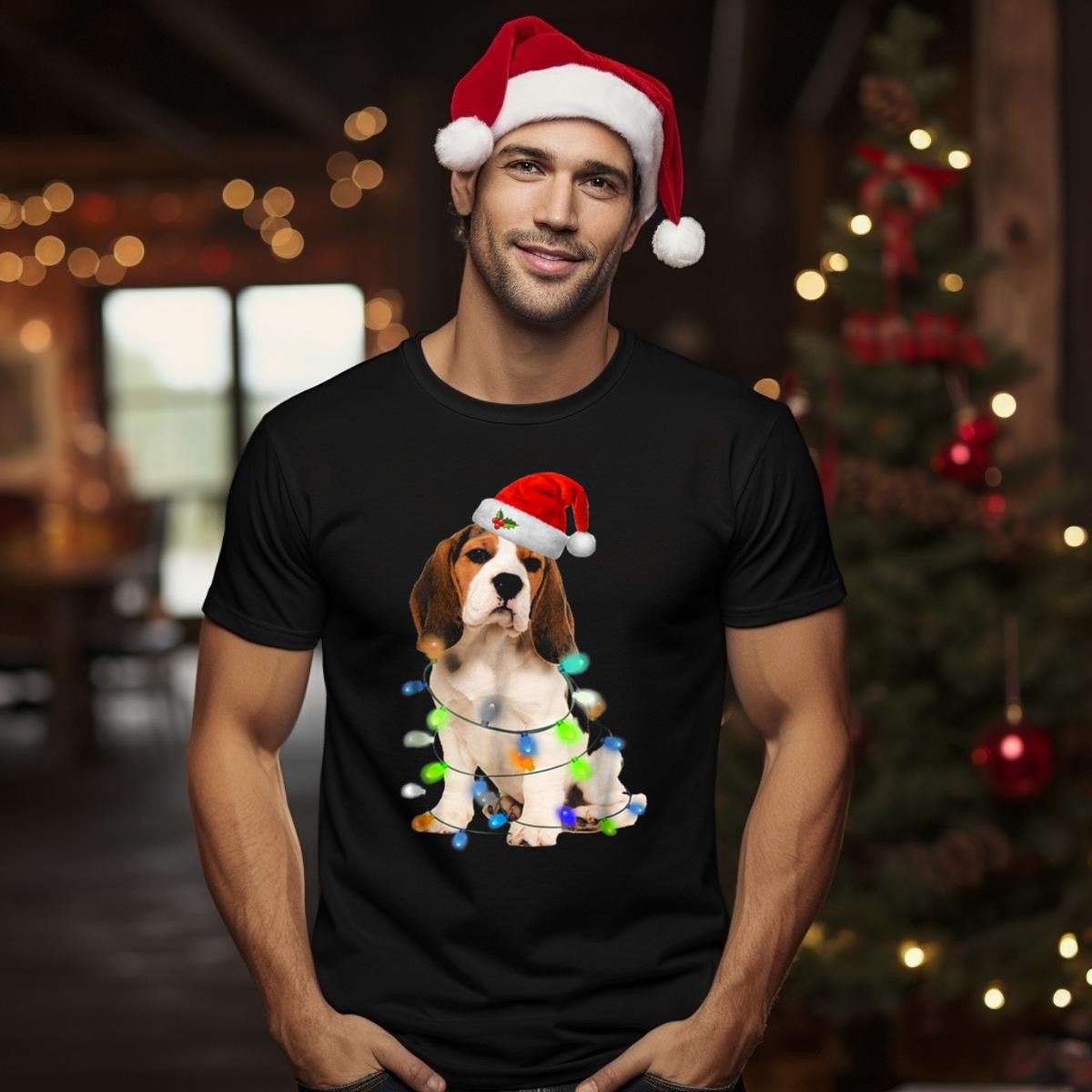 Celebrate the festive season with our Beagle Wrapped In Christmas Lights With Santa Hat T-Shirt, perfect for dog lovers and holiday enthusiasts alike! This charming design captures the joy of Christmas and is an ideal choice for moms, girls, or anyone who wants to spread holiday cheer. Whether you’re attending a themed event, gathering with family, or simply enjoying casual wear, this shirt is sure to bring smiles and warmth wherever you go. Plus, each shirt is fan-made and printed in the USA, ensuring a unique touch to your holiday wardrobe.