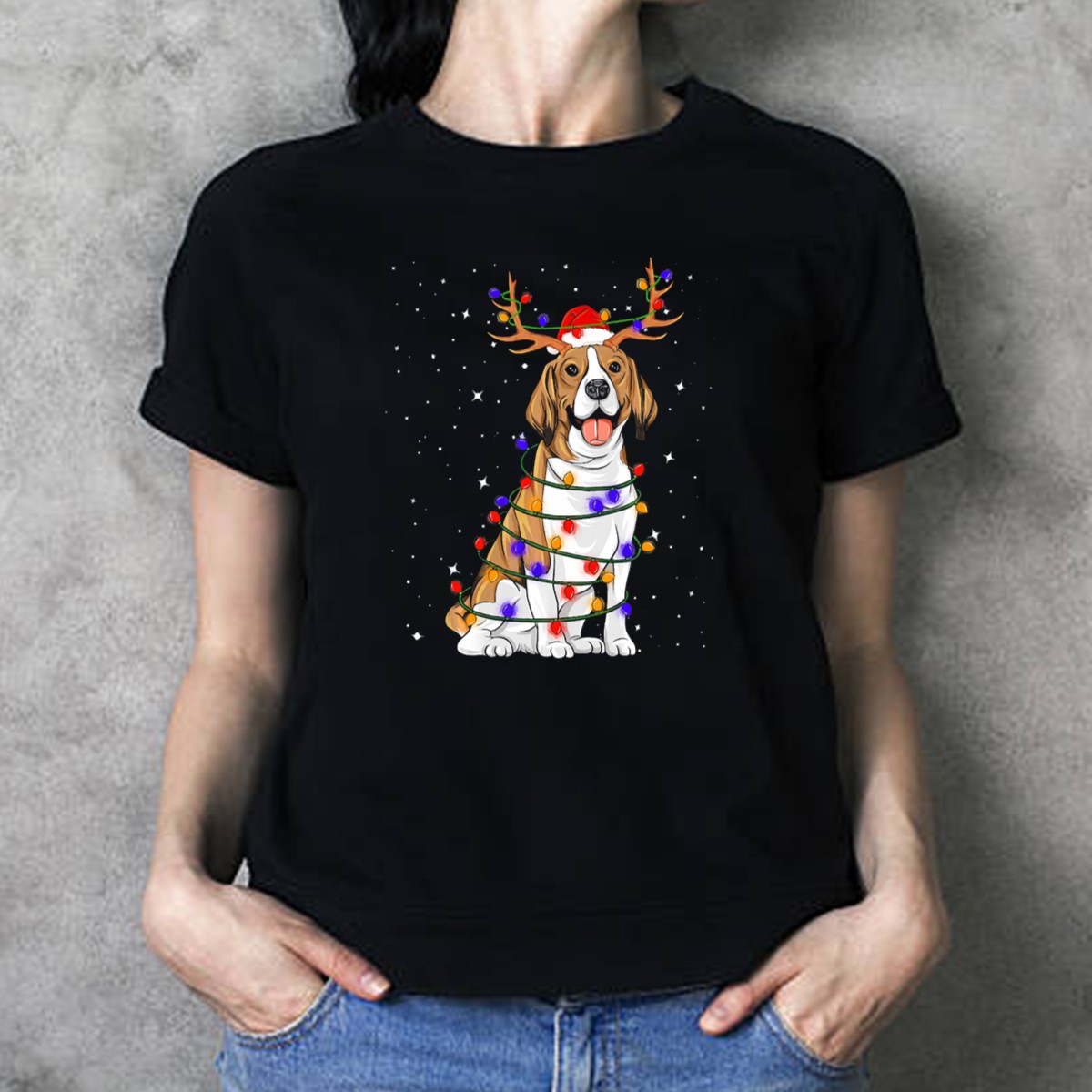 Celebrate the festive season with our delightful “Beagle Wrapped In Colorful Christmas Lights With Reindeer Antlers And Santa Hat” T-shirt! Perfect for dog lovers and holiday enthusiasts alike, this charming design adds a playful touch to your casual wear. Whether you’re attending a holiday party, enjoying a cozy family gathering, or just spreading cheer during daily outings, this shirt is sure to bring smiles all around. Made with love and care in the USA, it’s the ideal choice for showing off your holiday spirit!