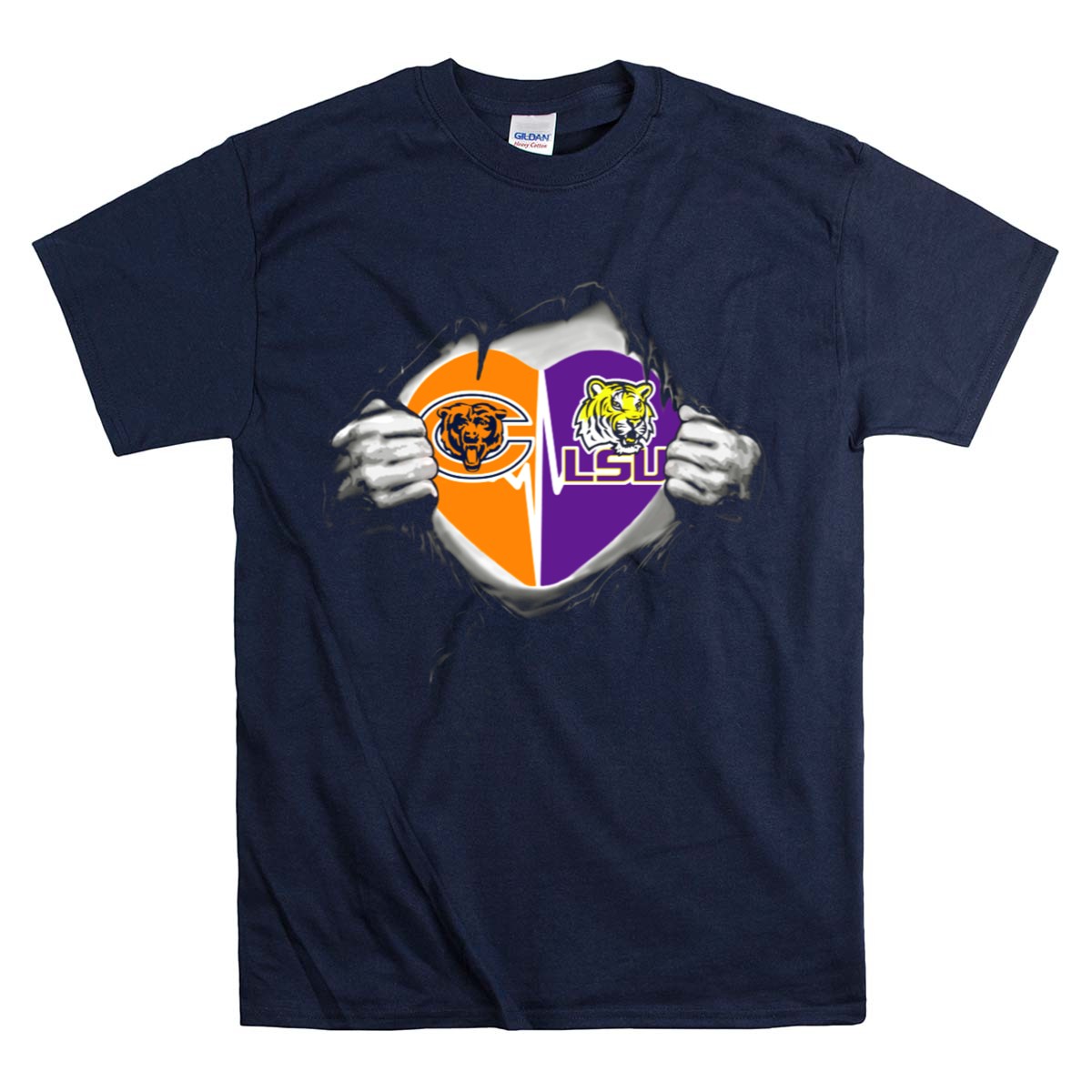 Show your love for the LSU Tigers with our Bears And LSU Heart Logos Ripped Open T-Shirt! This fan-made design is perfect for die-hard supporters looking to showcase their team spirit in style. Ideal for casual outings, themed events, or just lounging at home, this shirt combines comfort with a bold statement. Made in the USA, this unique tee is a must-have for any true LSU fan.