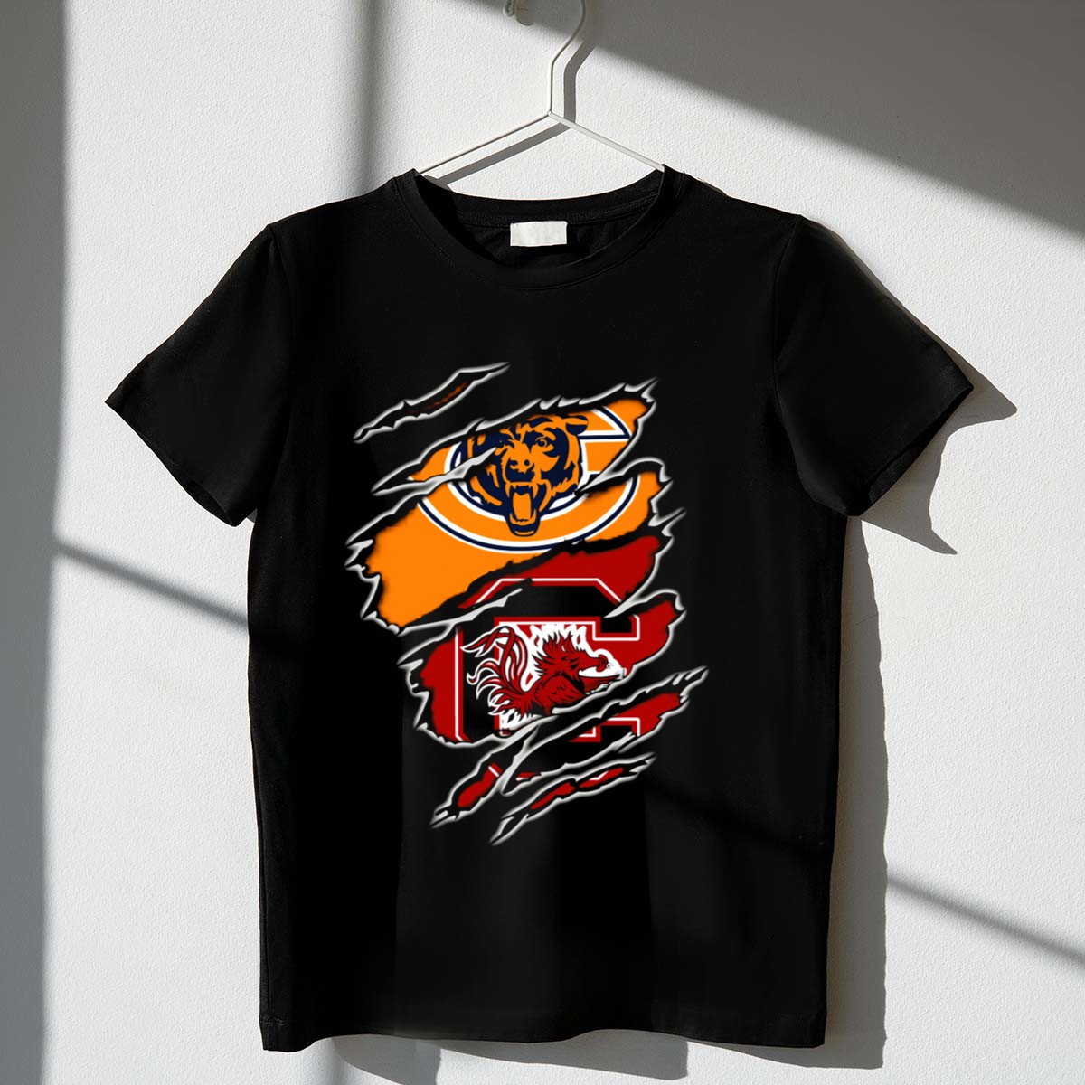 Show your pride for both bears and the Gamecocks with our unique Bears Gamecocks Logo Mashup T-shirt! This fan-made design is perfect for die-hard supporters who enjoy casual outings, themed events, or just expressing their love for their favorite teams in everyday life. Crafted from 100% cotton, this shirt offers unmatched comfort and breathability, making it a go-to choice for any season. Stand out from the crowd with this eye-catching mashup, printed right here in the USA!