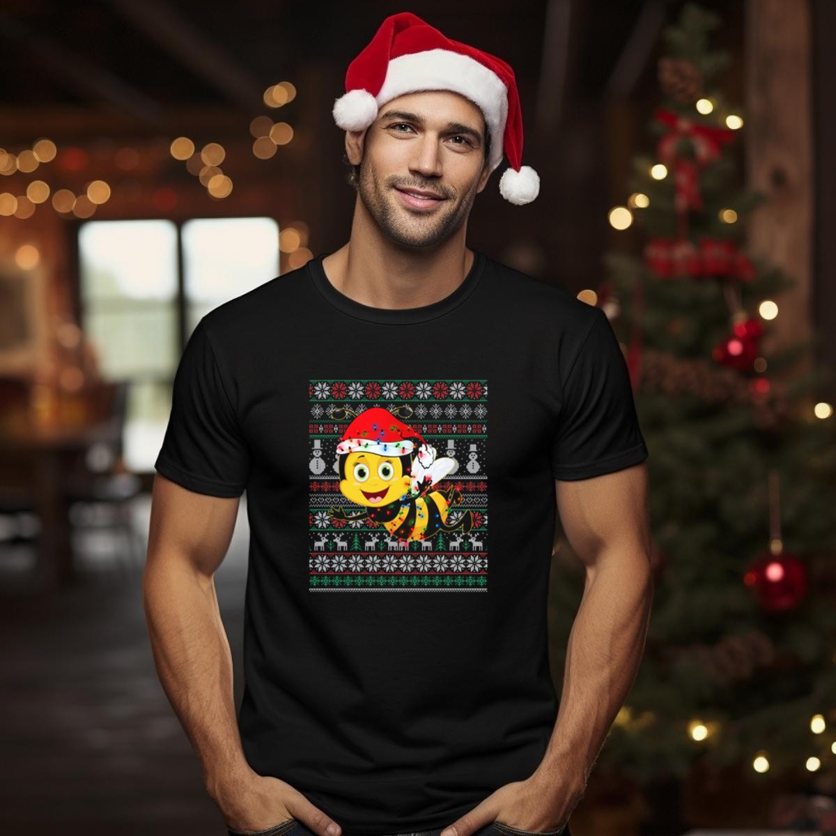 Get ready to spread some holiday cheer with our Bee Ugly Christmas Funny Xmas Bee Love T-Shirt! Perfect for bee lovers and anyone looking to add a touch of humor to their festive wardrobe, this fan-made design features an adorable bee wearing a Santa hat and holiday lights. Ideal for casual wear, themed events, or just lounging around during the holiday season, this shirt is sure to bring smiles wherever you go!