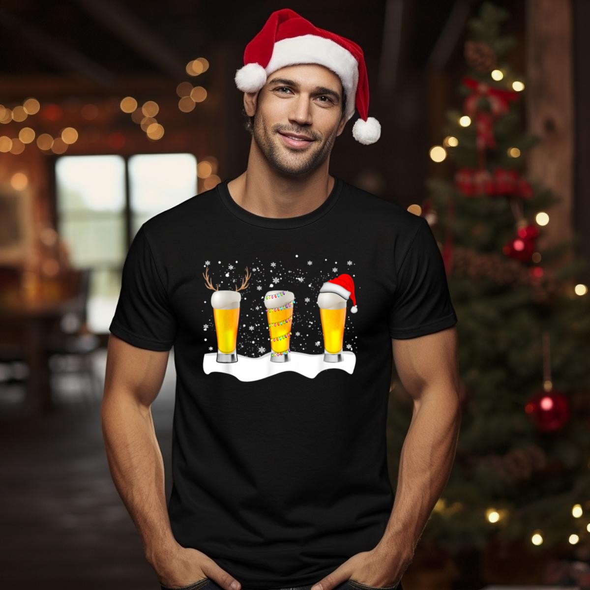 Get ready to spread holiday cheer with our Beer Christmas Santa Reindeer T-Shirt! Perfect for festive gatherings, themed events, or a casual day out, this shirt showcases a fun and playful design featuring Santa, reindeer, and sparkling Xmas lights. Made for those who love to celebrate the season in style, this fan-made graphic tee is a must-have addition to your winter wardrobe, printed right here in the USA for quality you can trust.