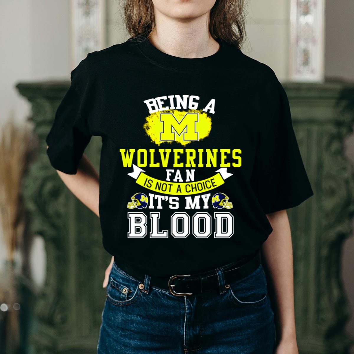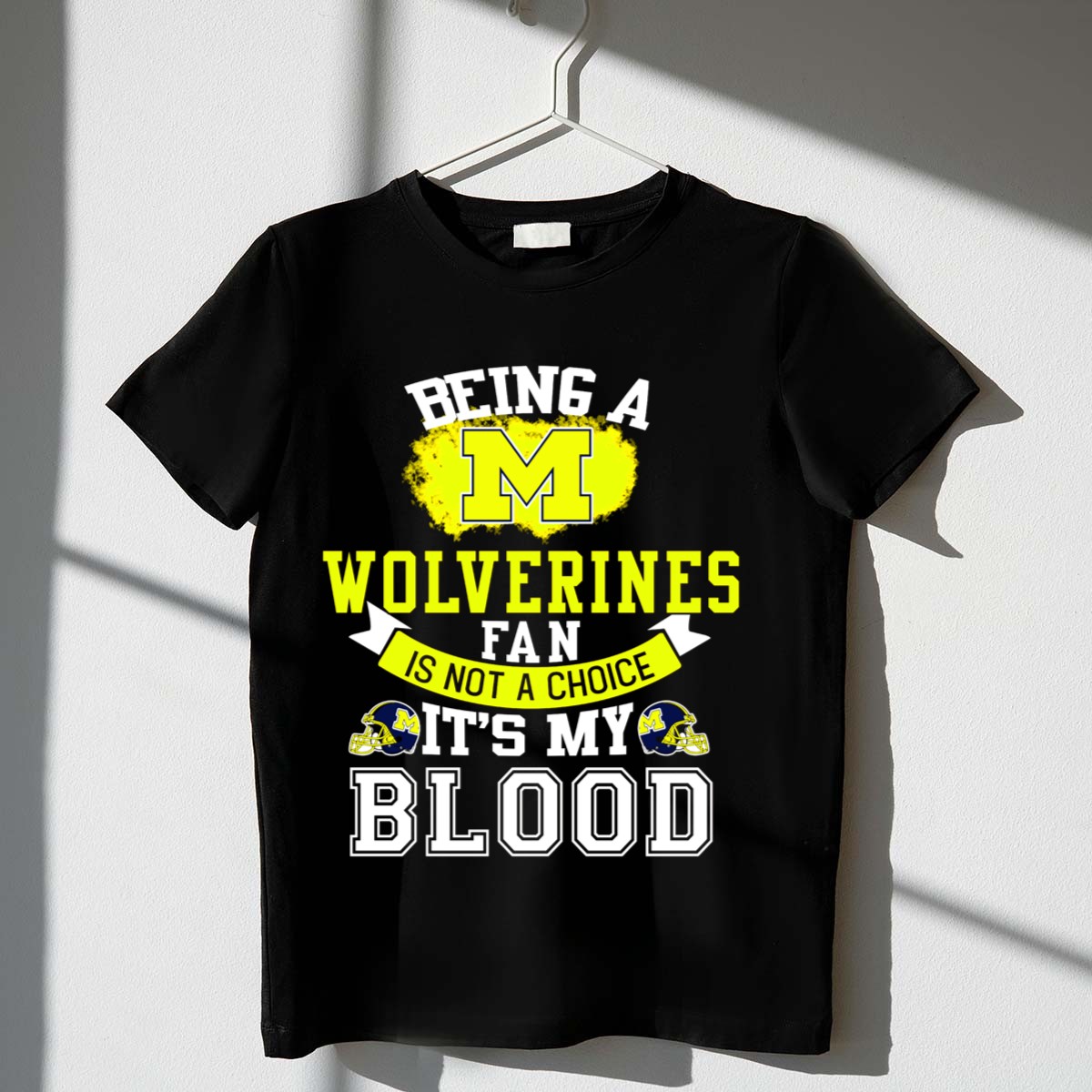 Show your unwavering support for the Michigan Wolverines with our “Being A Michigan Wolverines Fan Is Not A Choice It’s My Blood” T-shirt. Perfect for die-hard fans, this shirt is ideal for casual outings, game day celebrations, or any themed events where you want to display your team spirit. Crafted with a unique fan-made design printed in the USA, this T-shirt combines comfort with a bold statement, making it a must-have for every Wolverines supporter.