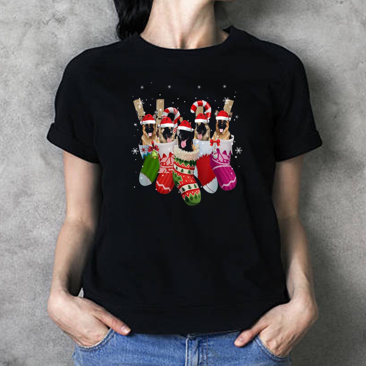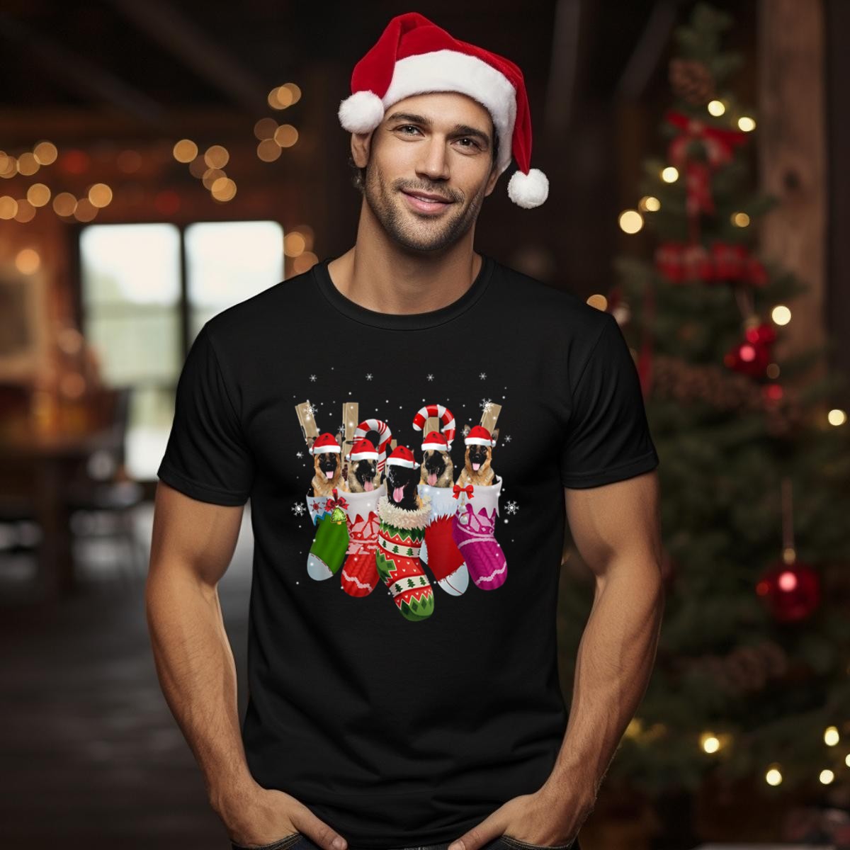 Celebrate the festive spirit with our Belgian Malinois Dogs In Christmas Stockings With Santa Hats And Candy Canes T-Shirt! Perfect for dog lovers and holiday enthusiasts alike, this charming design adds a playful touch to your casual wardrobe. Whether you’re attending a themed event, running errands, or simply enjoying a cozy day at home, this shirt is a delightful way to showcase your love for Belgian Malinois during the holiday season. Made with care in the USA, it’s a unique addition to your collection!