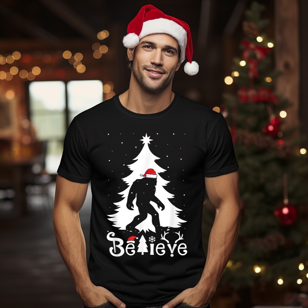 Embrace the holiday spirit with our “Believe Bigfoot Christmas Santa Hat Snowflakes” T-shirt, perfect for those who love a quirky twist on festive fashion! This fan-made design is ideal for Bigfoot enthusiasts and holiday revelers alike, making it a fun choice for casual wear, themed events, or simply spreading cheer during the festive season. Crafted with care in the USA, this shirt blends comfort and style, ensuring you stand out while celebrating the most wonderful time of the year.