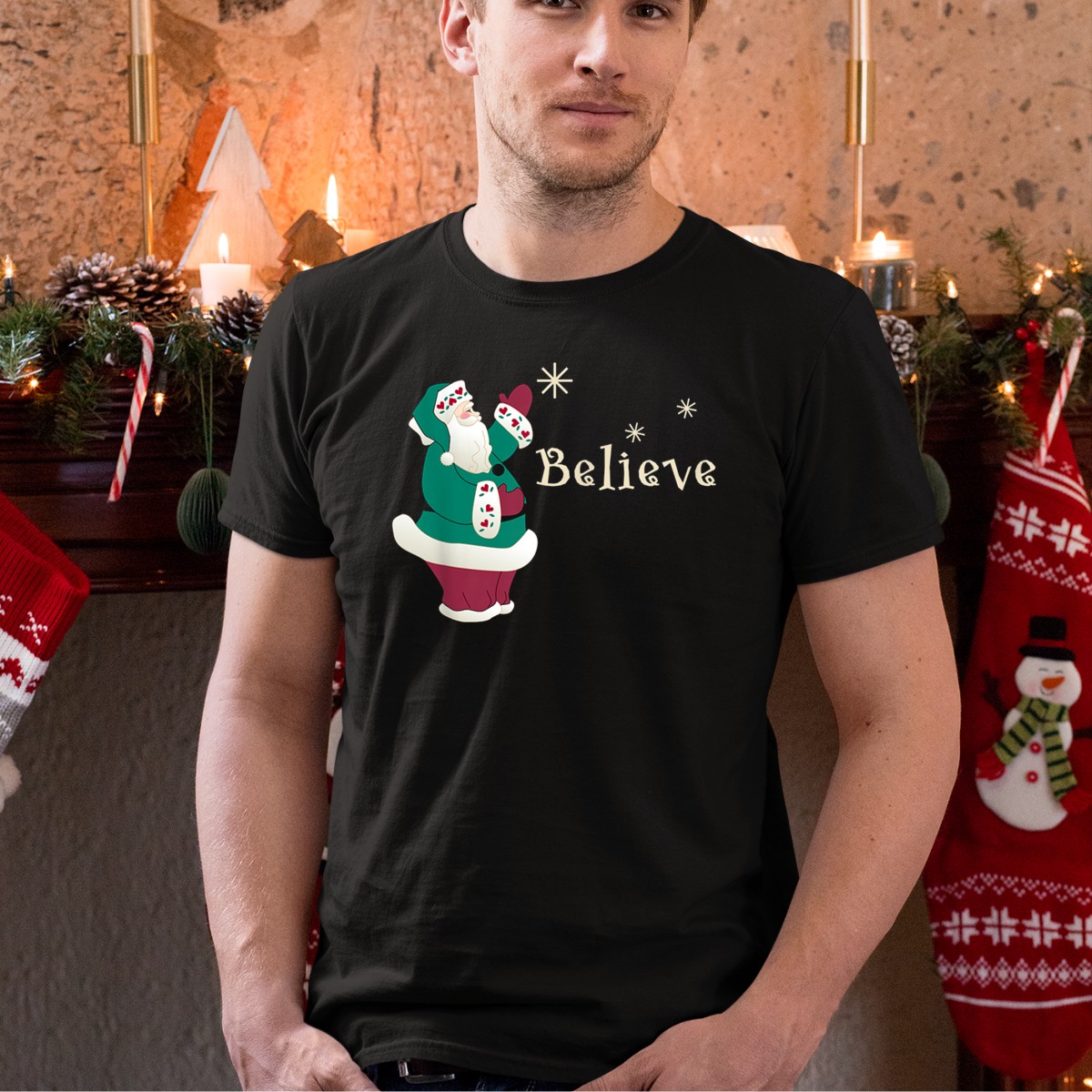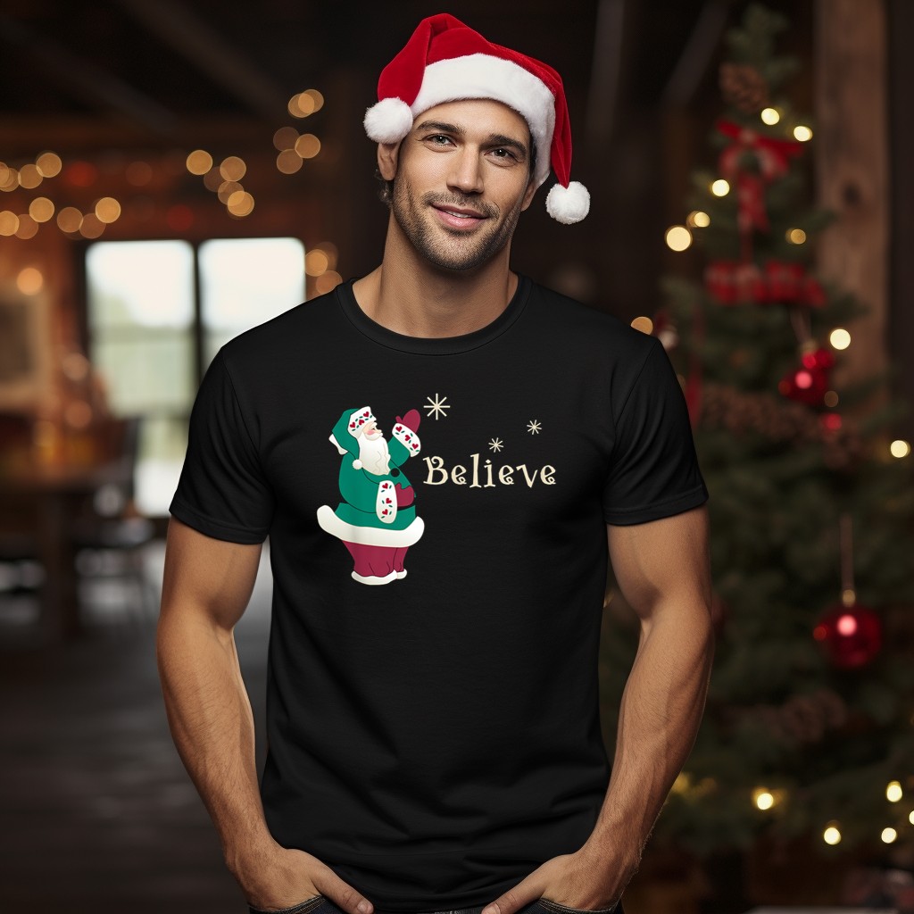 Embrace the festive spirit with our “Believe In Santa” Christmas Holiday Joy T-Shirt, perfect for spreading cheer during the holiday season! This fan-made design captures the magic of Christmas, making it an ideal choice for family gatherings, themed events, or simply enjoying daily wear. Crafted for comfort and style, this shirt is a delightful addition to any holiday wardrobe and is proudly printed in the USA.