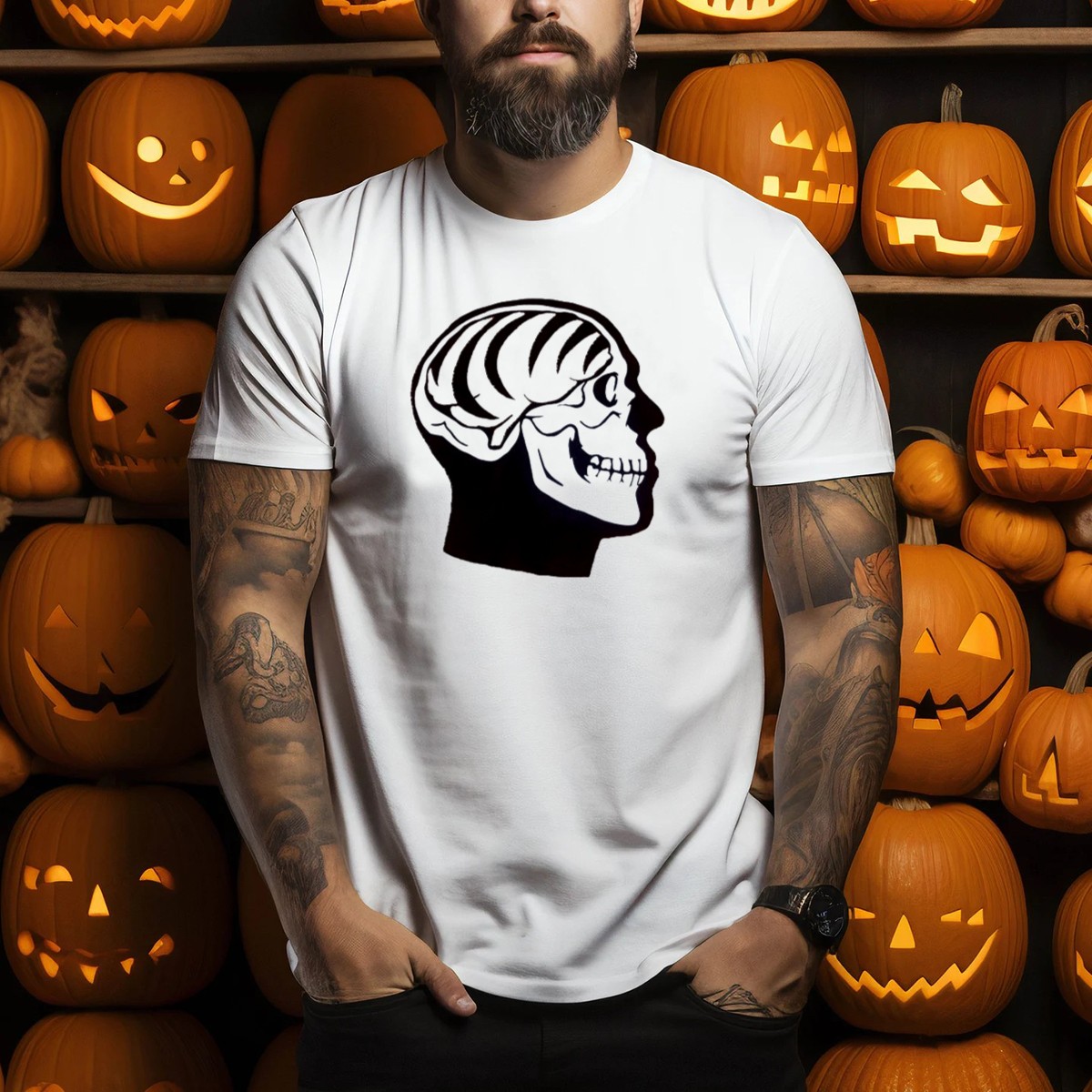 Embrace the spirit of Halloween with our Bengal Brain Orange Skull T-Shirt, perfect for those who dare to stand out! This fan-made design features a striking skeleton tiger stripe print that combines fierce style with a playful twist, making it an excellent choice for themed events, casual outings, or simply expressing your unique personality. Crafted for comfort and durability, this shirt is a must-have for any trendsetter looking to add a fun, spooky vibe to their wardrobe.