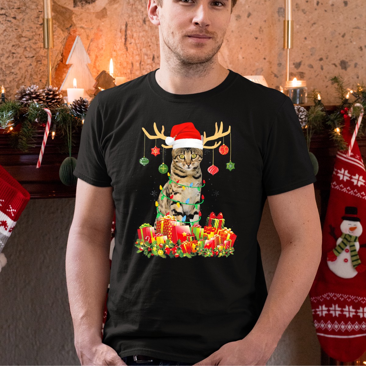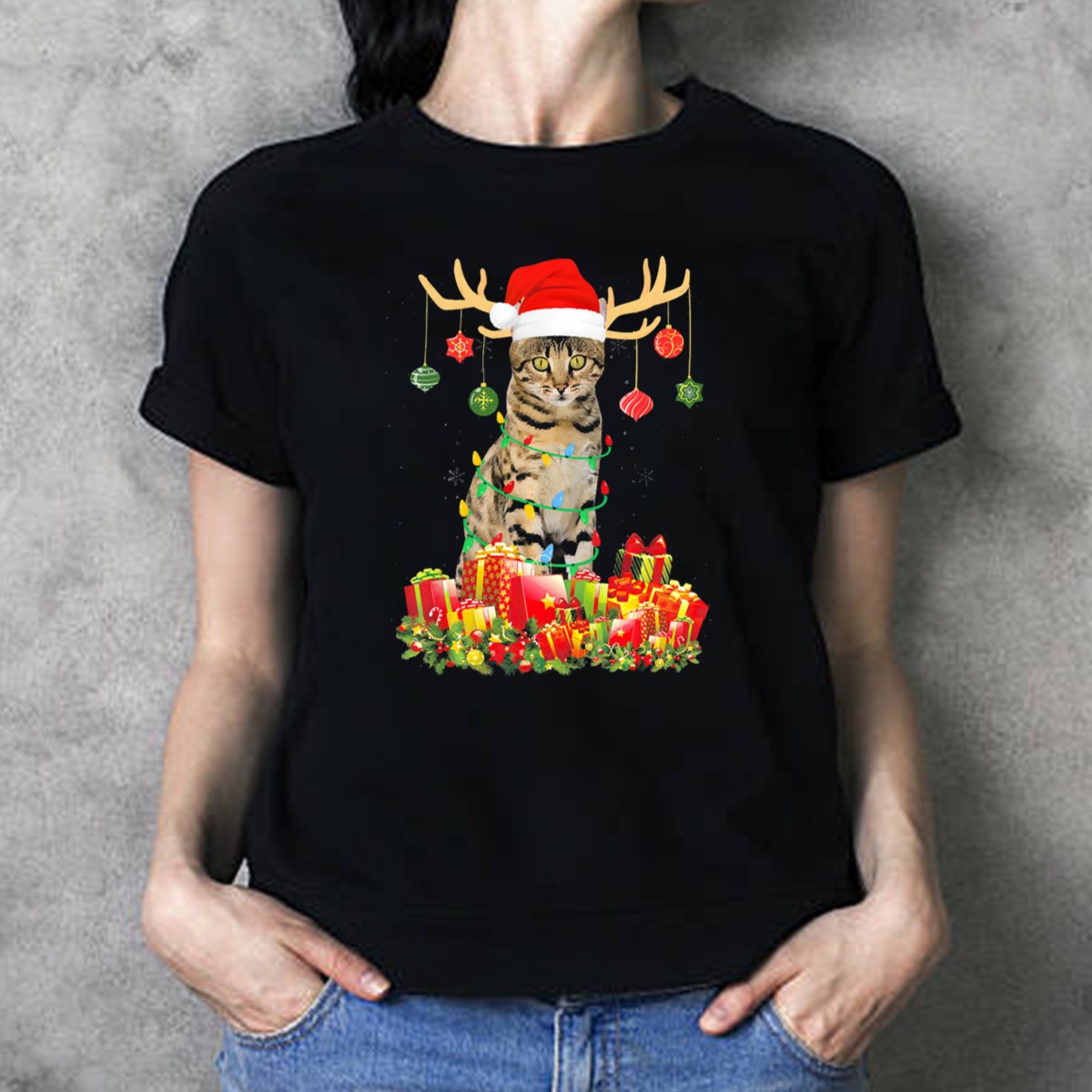 Be the first to review “Bengal Cat Santa Hat Reindeer Antlers Christmas Lights And Presents T-Shirt”