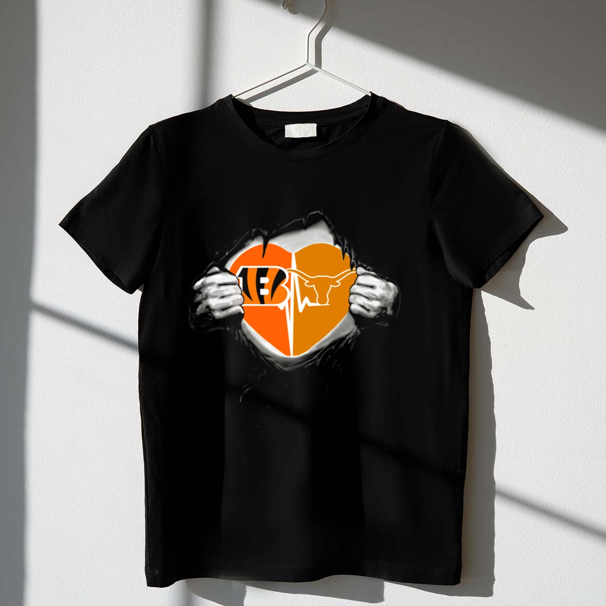 Show your love for both the Bengals and Texas Longhorns with this stylish Heart Design T-Shirt! Perfect for fans of all ages, this unisex tee combines comfort with a unique graphic, making it an ideal choice for casual outings, themed events, or daily wear. Crafted from 100% cotton, it offers a soft and breathable fit, ensuring you stay cool and comfortable while showcasing your team spirit. Stand out in any crowd and proudly represent your favorite teams with this fan-made design printed right here in the USA!