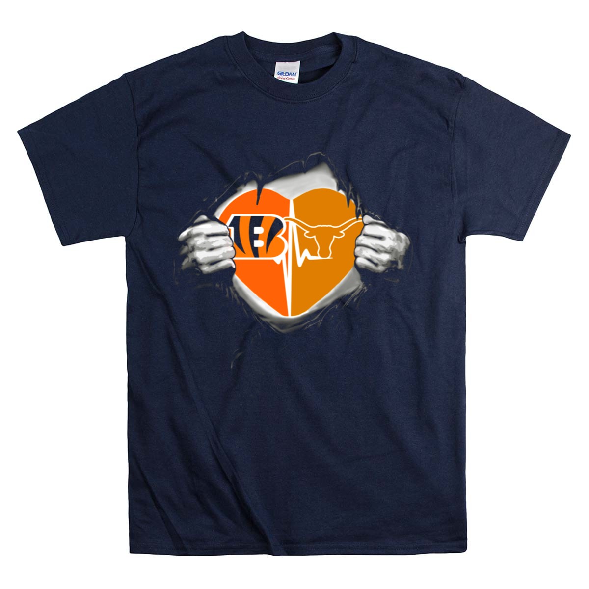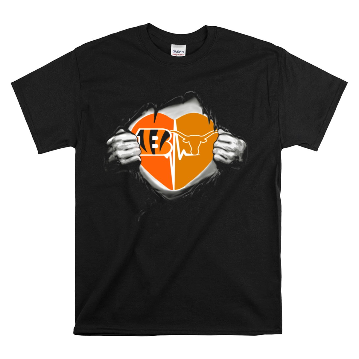 Bengals Texas Longhorns Heart Design With Logo Elements And Symbolic T-Shirt