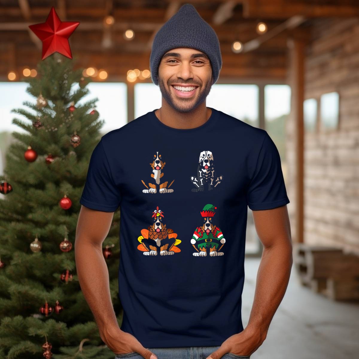 Celebrate the festive spirit and showcase your love for Bernese Mountain Dogs with our unique fan-made graphic T-shirt! This versatile tee, perfect for dog lovers, features an eye-catching design that blends Halloween, Thanksgiving, and Christmas themes. Whether you’re attending a casual get-together, holiday parties, or simply enjoying daily wear, this pullover shirt will keep you comfortable and stylish all season long.