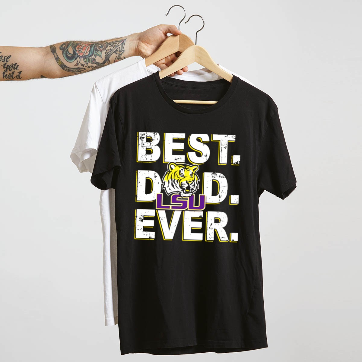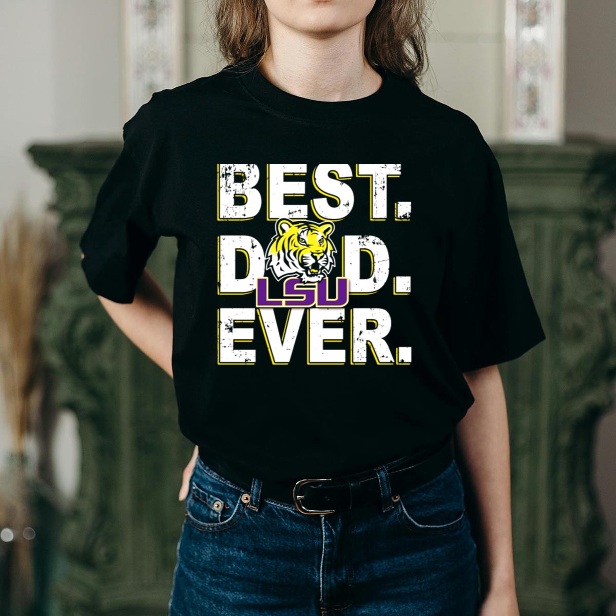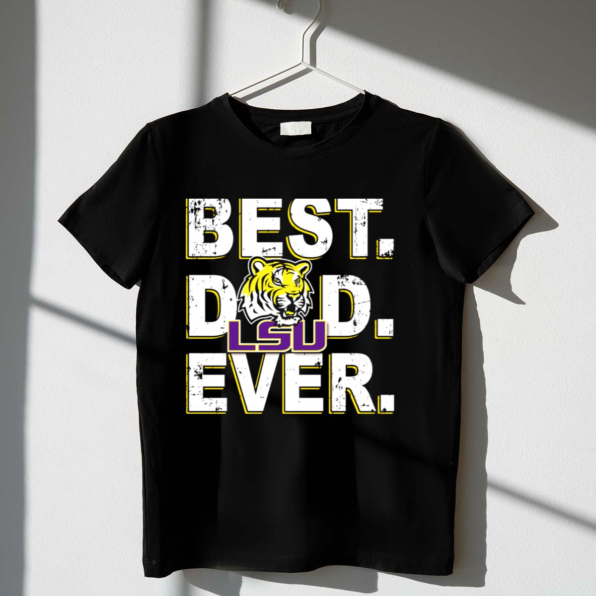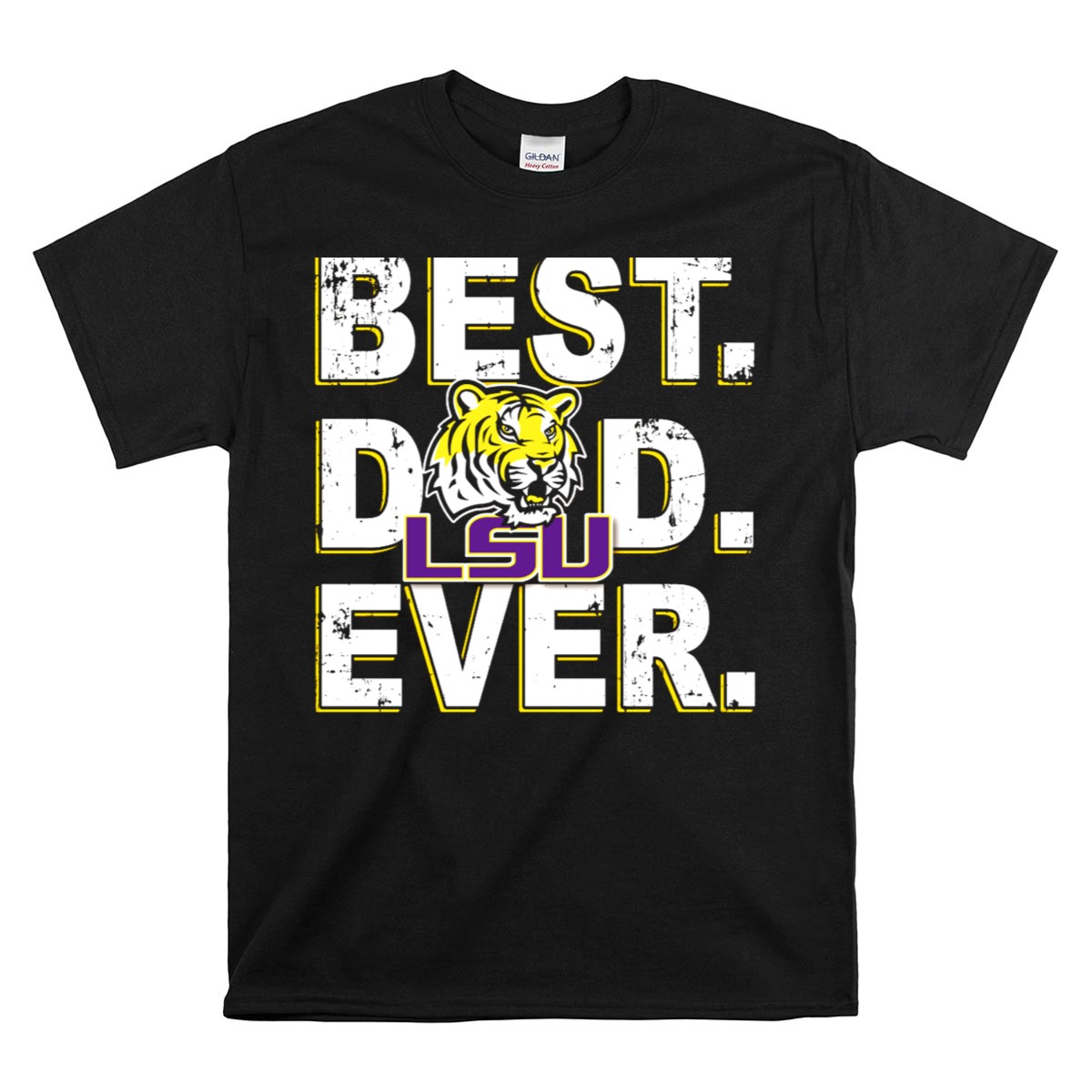 Show your support for the LSU Tigers and celebrate the best dad ever with this fan-made graphic printed T-shirt! Perfect for any proud father who loves to represent his favorite team, this shirt is ideal for casual outings, themed events, or just lounging around the house. Made in the USA, it combines comfort and style, making it a must-have for any Tigers fan.
