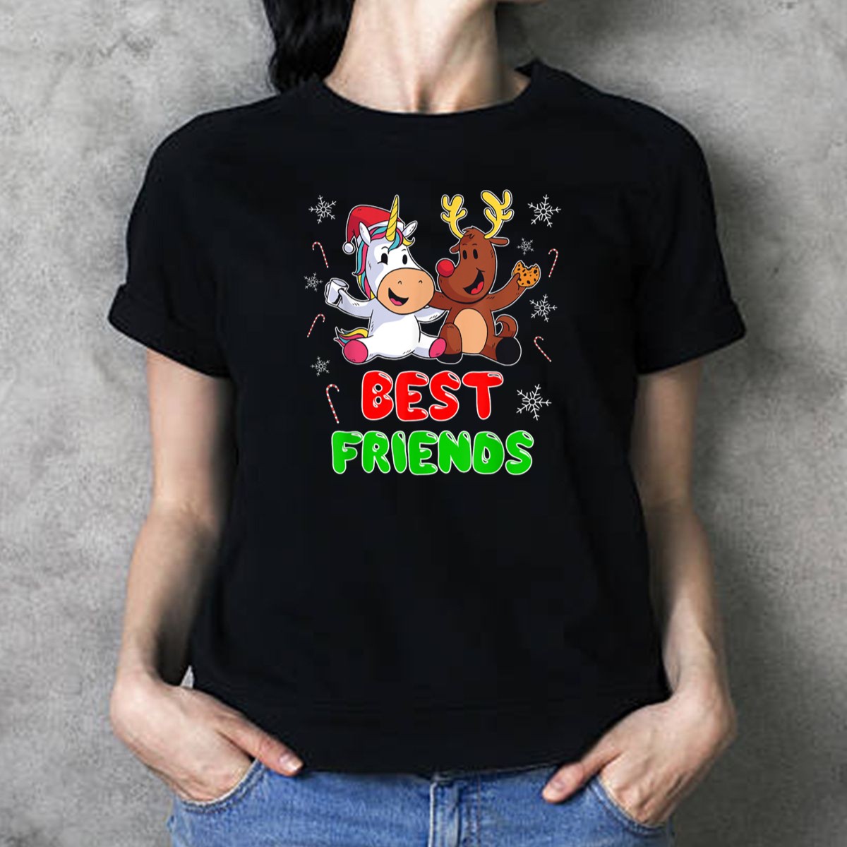 Celebrate the magic of the holiday season with our Best Friends Unicorn Reindeer Christmas Cookies Snowflakes Candy Canes T-Shirt! Perfect for friends who love whimsical designs and festive cheer, this shirt is ideal for casual outings, themed events, or cozy gatherings. The unique fan-made graphic combines beloved holiday symbols, making it a must-have for anyone looking to spread joy and laughter during the most wonderful time of the year!