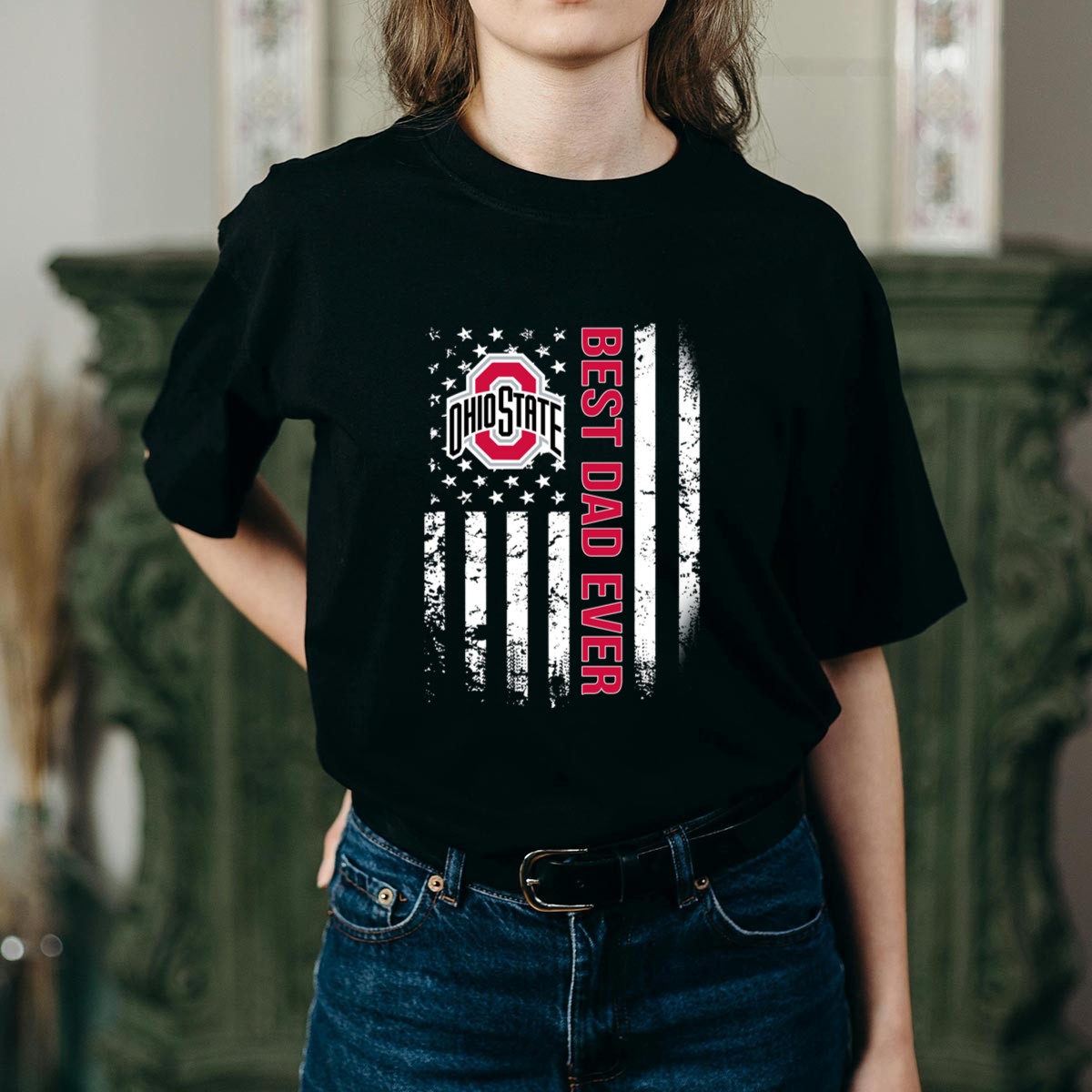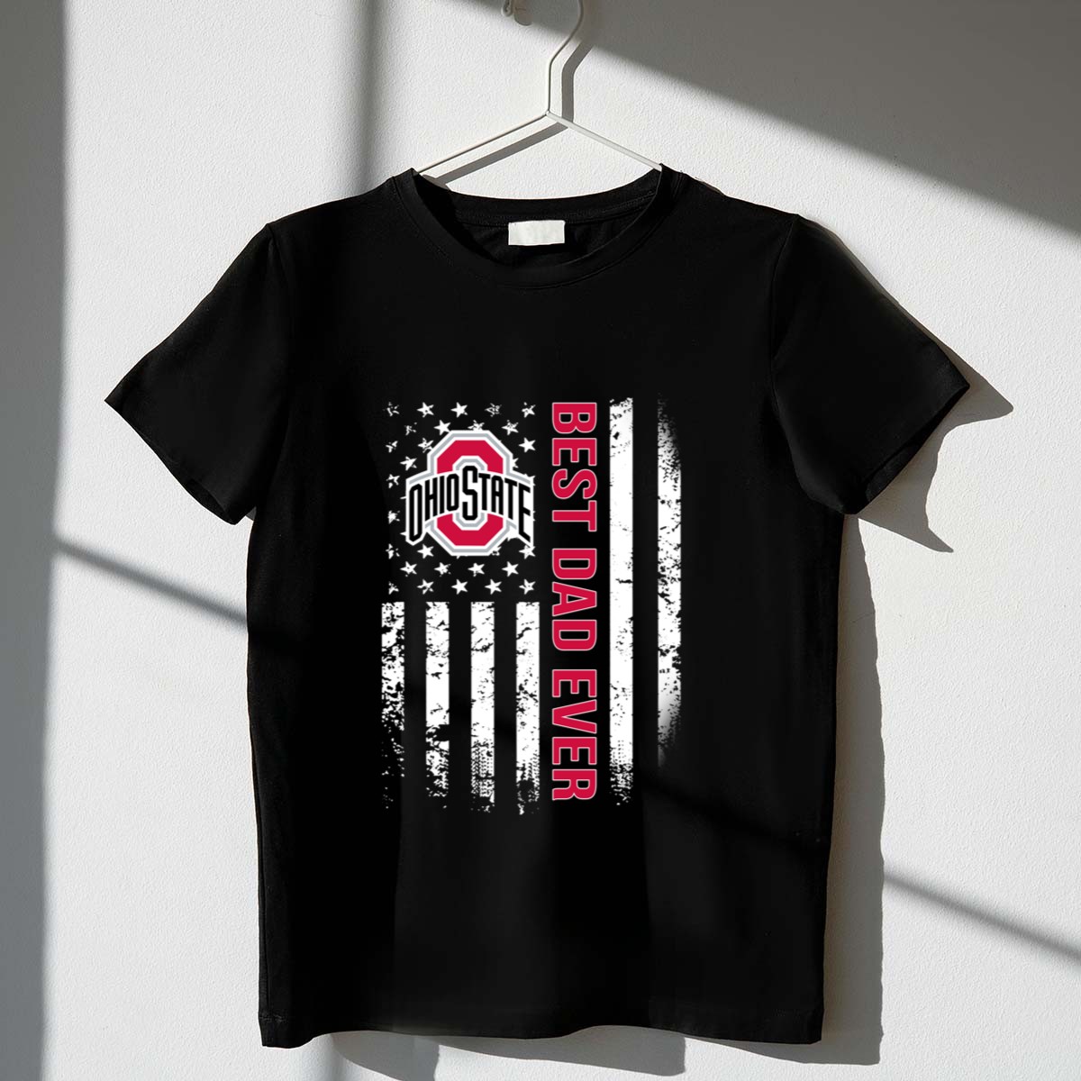 Celebrate your pride as the ultimate Ohio State Buckeyes dad with this eye-catching American flag graphic T-shirt! Perfect for game days, family gatherings, or casual outings, this fan-made design showcases your unwavering support for the Buckeyes while adding a unique twist with the patriotic flair. Crafted from soft, durable, and breathable cotton, this classic fit tee ensures comfort all day long, making it a must-have for any devoted fan.