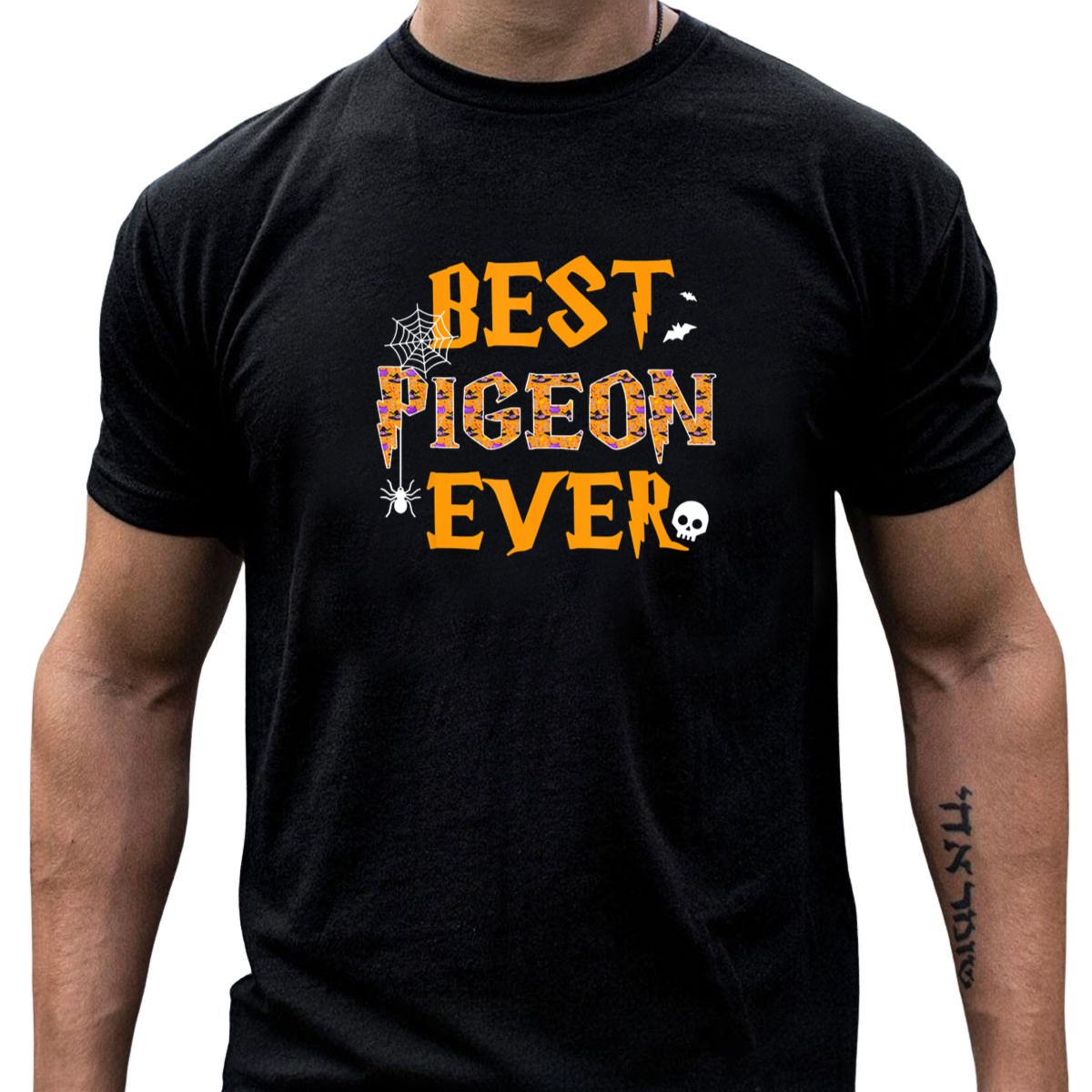 Best Pigeon Ever Halloween Spider Web Skull Bats T-Shirt