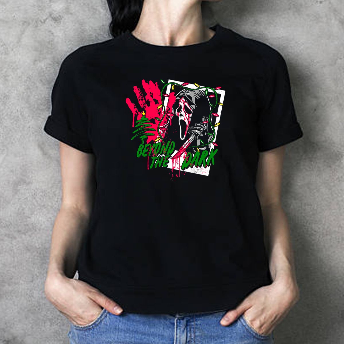 Embrace the spooky season with our Beyond The Dark Ghost Face Christmas Lights And Bloody Handprint T-Shirt, perfect for horror enthusiasts and fans of thrilling themes. This unique shirt blends festive fun with a chilling twist, making it an ideal choice for casual wear, themed events, or just to showcase your love for all things eerie in daily life. Crafted with care in the USA, it’s a must-have for anyone looking to stand out during the holidays!