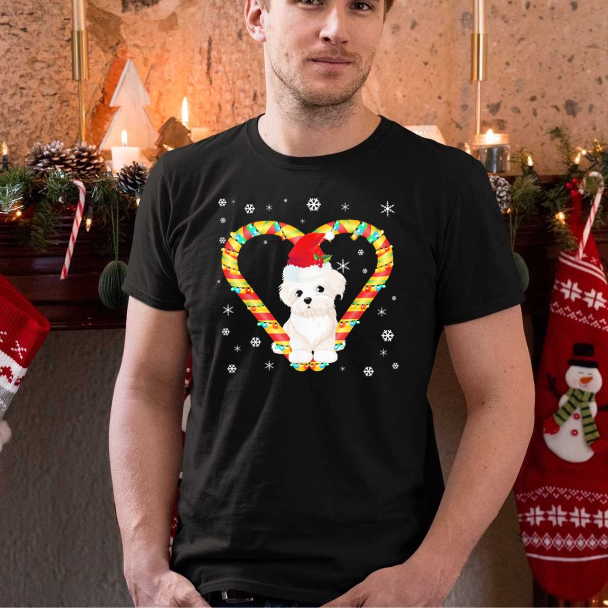 Celebrate the festive season in style with our delightful Bichon Frise Christmas T-Shirt! Perfect for dog lovers and holiday enthusiasts alike, this fan-made design features an adorable Bichon Frise wearing a Santa hat, surrounded by heart candy canes and snowflakes. Ideal for casual wear, themed events, or simply spreading holiday cheer, this T-shirt will keep you feeling comfortable and stylish throughout the holiday festivities.