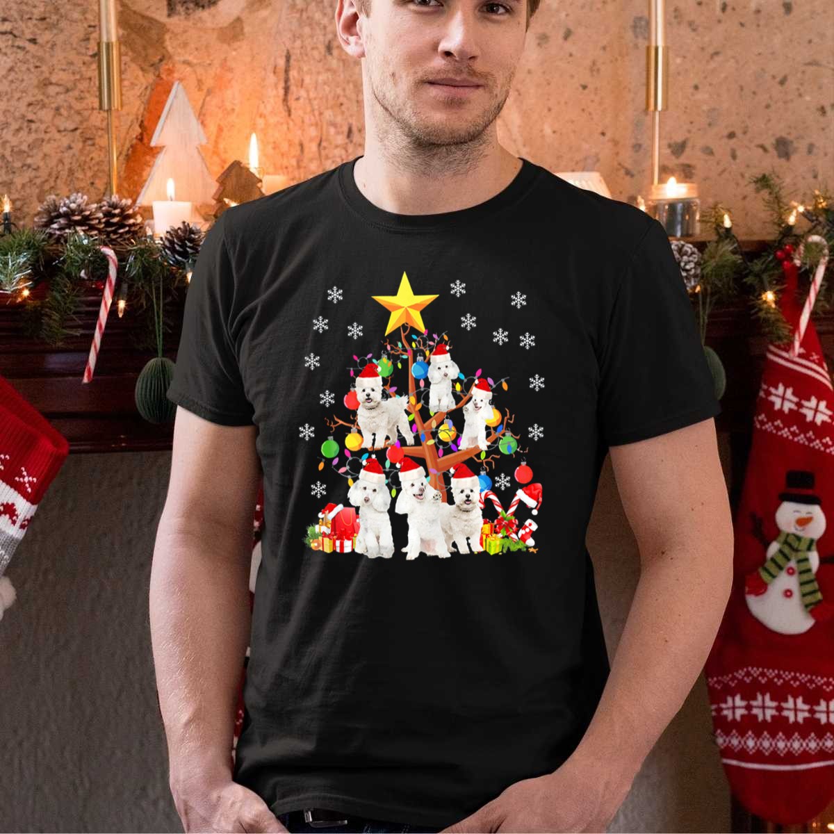 Celebrate the festive season in style with our Bichon Frise Christmas Tree Ornament T-shirt! Perfect for dog lovers and holiday enthusiasts alike, this playful design features adorable Bichon Frise pups dressed up in Santa hats, surrounded by snowflakes and gift boxes, creating a cheerful vibe for any casual occasion. Ideal for holiday gatherings, themed events, or simply adding a touch of joy to your everyday wear, this shirt is a must-have for spreading holiday cheer!