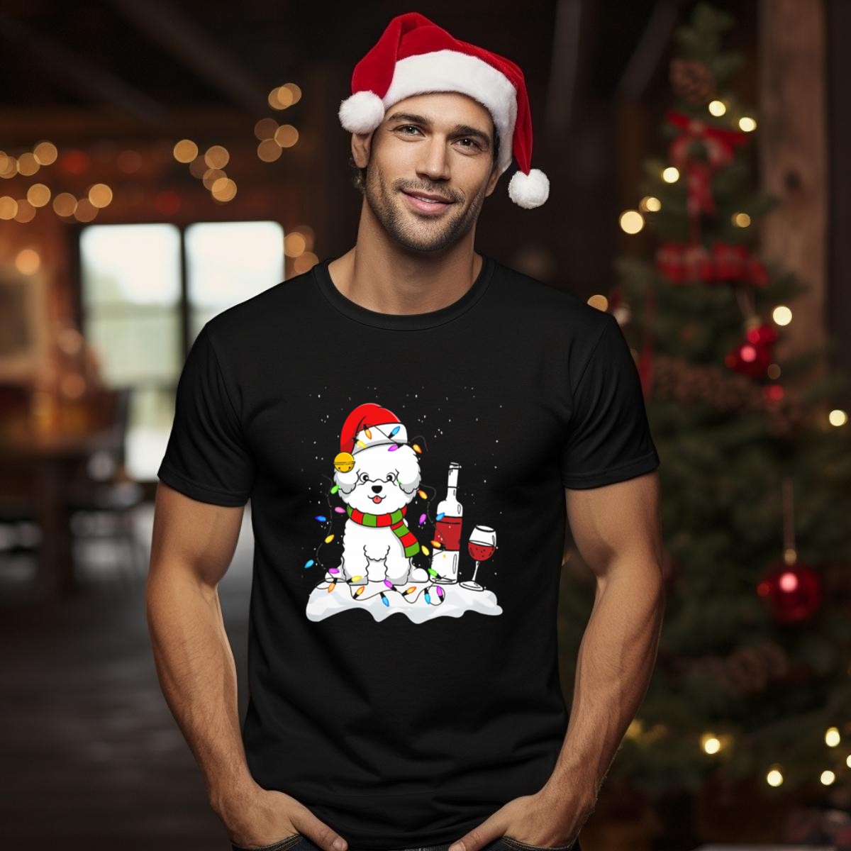 Celebrate the festive season with our adorable Bichon Frise Dog Wrapped In Christmas Lights T-Shirt! Perfect for dog lovers and holiday enthusiasts alike, this fan-made design captures the playful spirit of your furry friend enjoying the holidays while adding a touch of whimsy to any casual outfit. Ideal for themed events, family gatherings, or simply lounging at home, this shirt is a must-have for spreading cheer and showcasing your love for Bichon Frises.