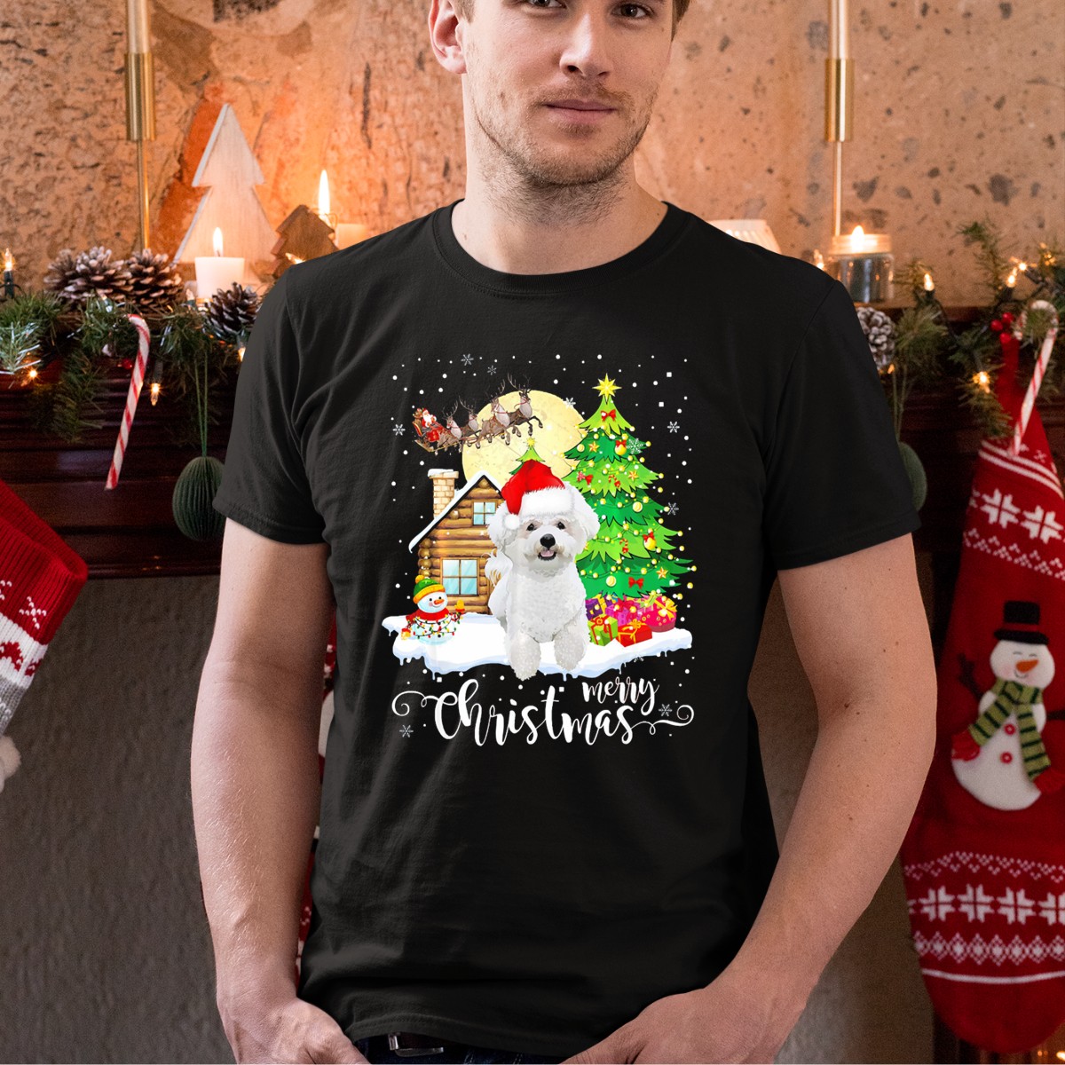 Celebrate the festive season in style with our Bichon Frise Merry Christmas T-Shirt, designed for dog lovers and holiday enthusiasts alike! This delightful shirt features an adorable Bichon Frise sporting a Santa hat amidst a cheerful winter scene, making it the perfect choice for casual wear, themed events, or daily outings during the holidays. Crafted for comfort and style, it’s a unique fan-made design printed right here in the USA, ensuring you stand out while sharing your love for this charming breed.