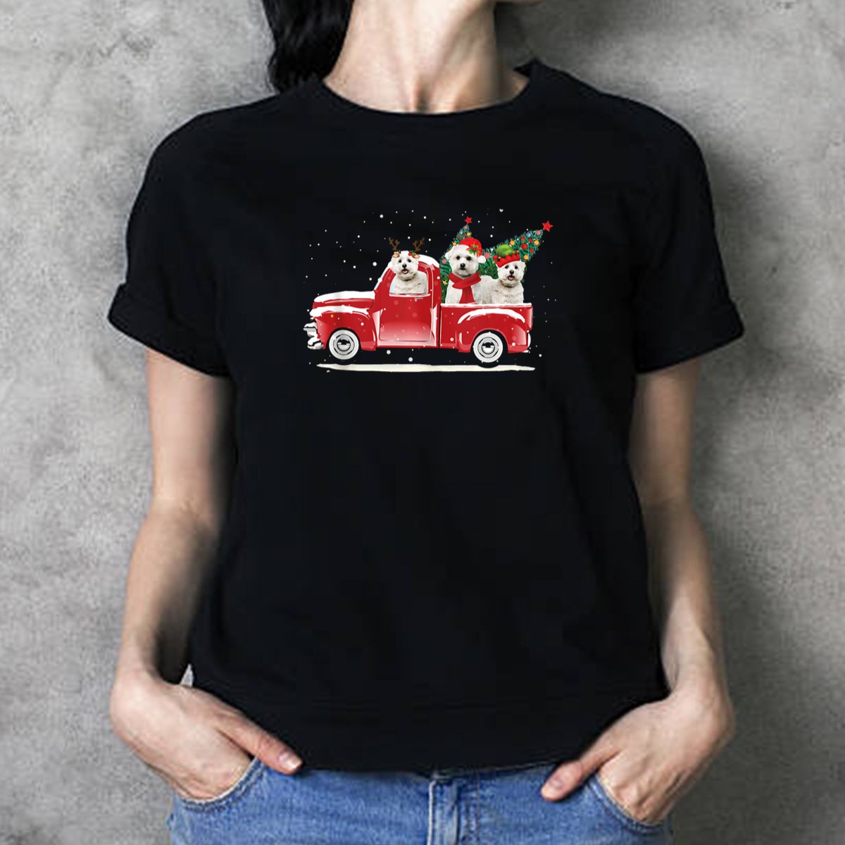 Be the first to review “Bichon Frise Reindeer And Santa Christmas Truck With Trees T Shirt”