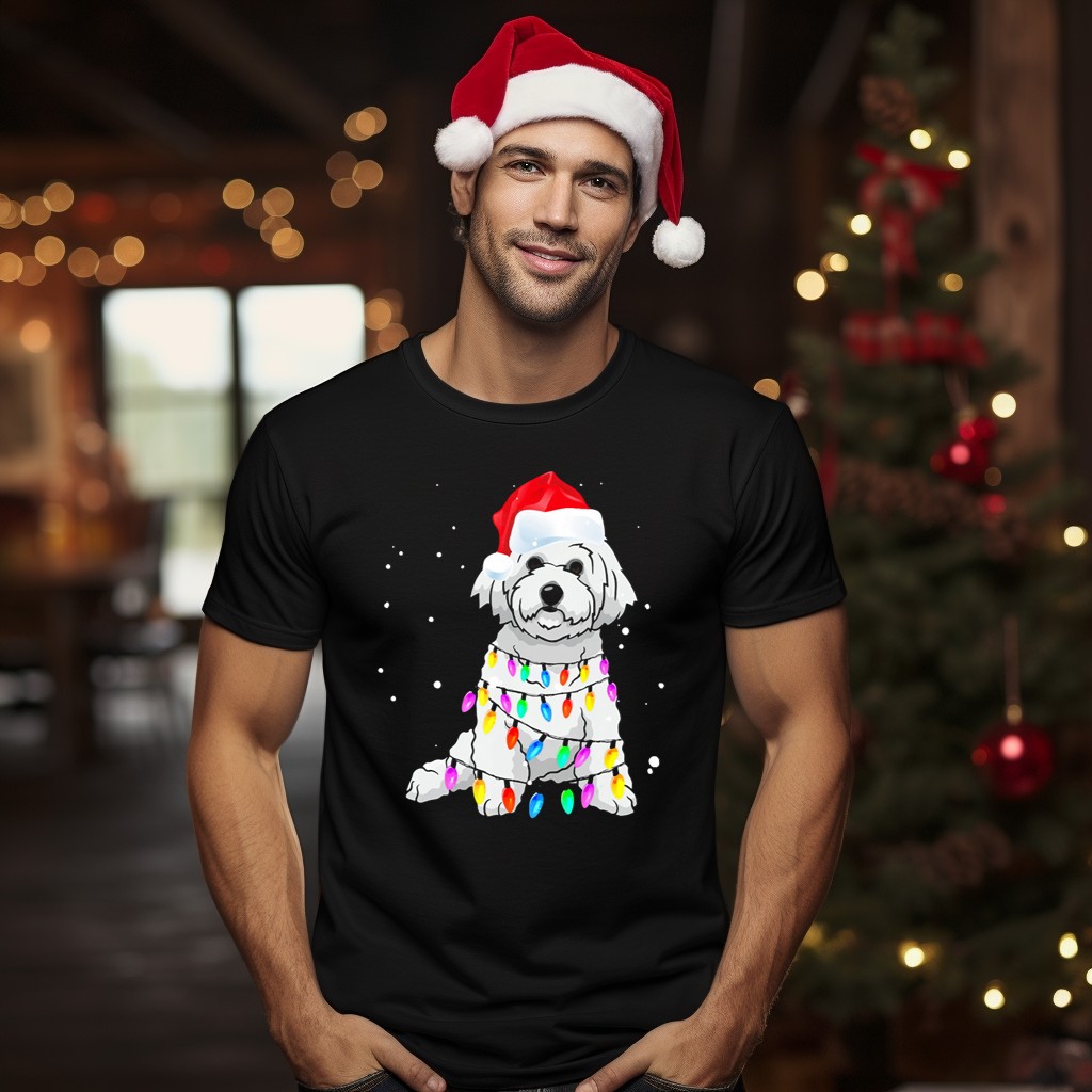 Celebrate the festive season with our delightful Bichon Frise With Christmas Lights And Santa Hat T-Shirt, perfect for dog lovers and holiday enthusiasts alike! This charming tee features an adorable graphic that captures the playful spirit of your favorite furry friend adorned with twinkling lights and a classic Santa hat. Ideal for casual wear, themed events, or simply spreading holiday cheer, this shirt is a unique addition to your seasonal wardrobe, making you the star of any gathering!