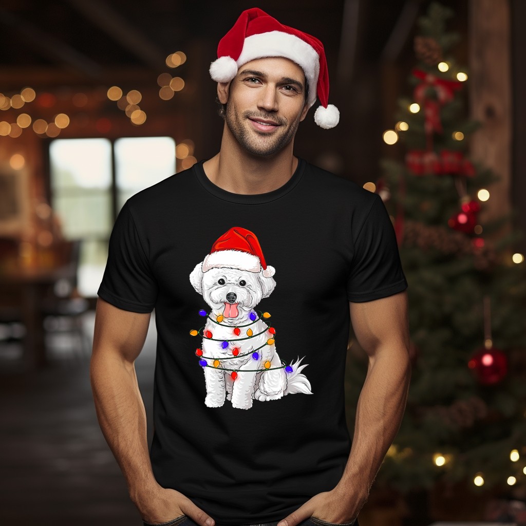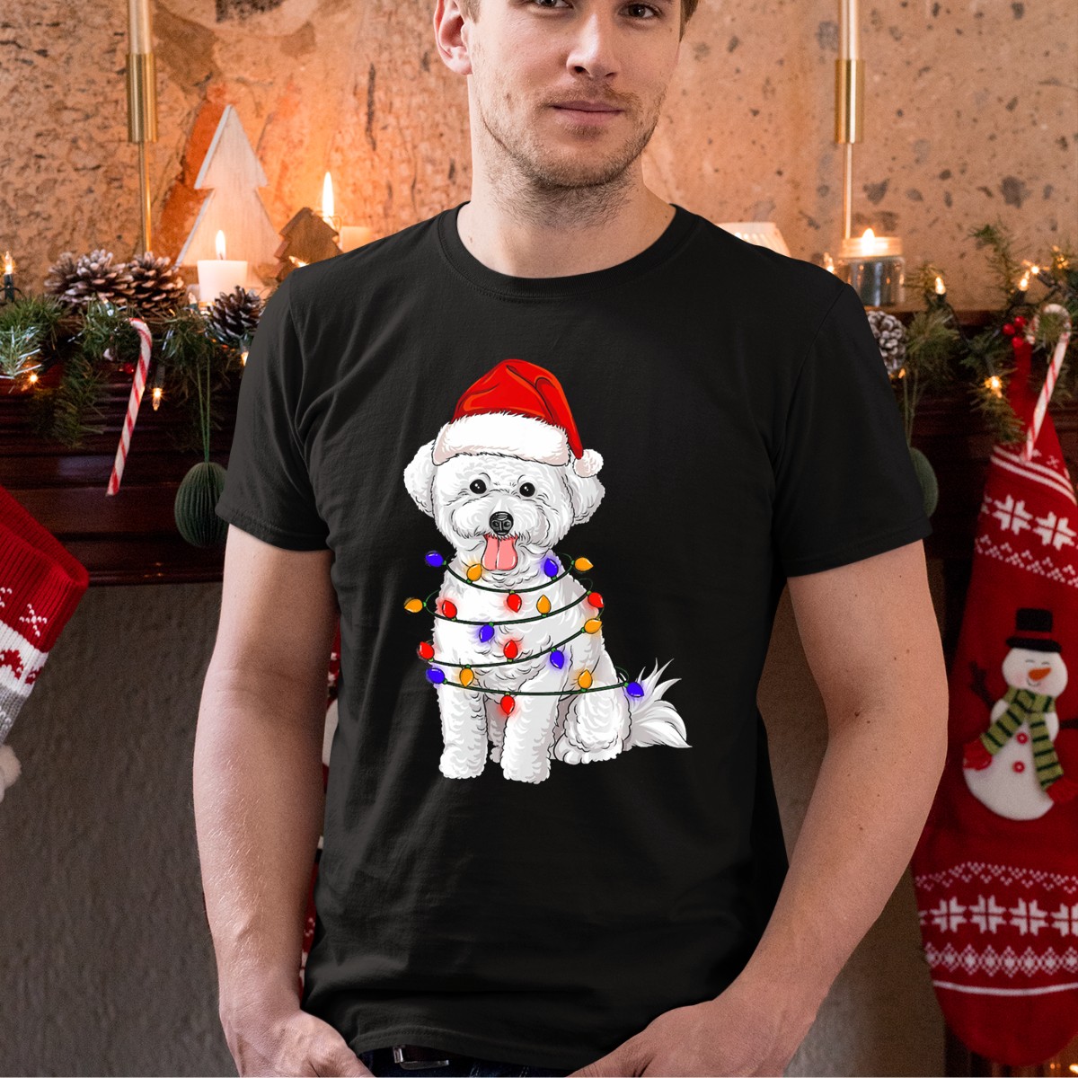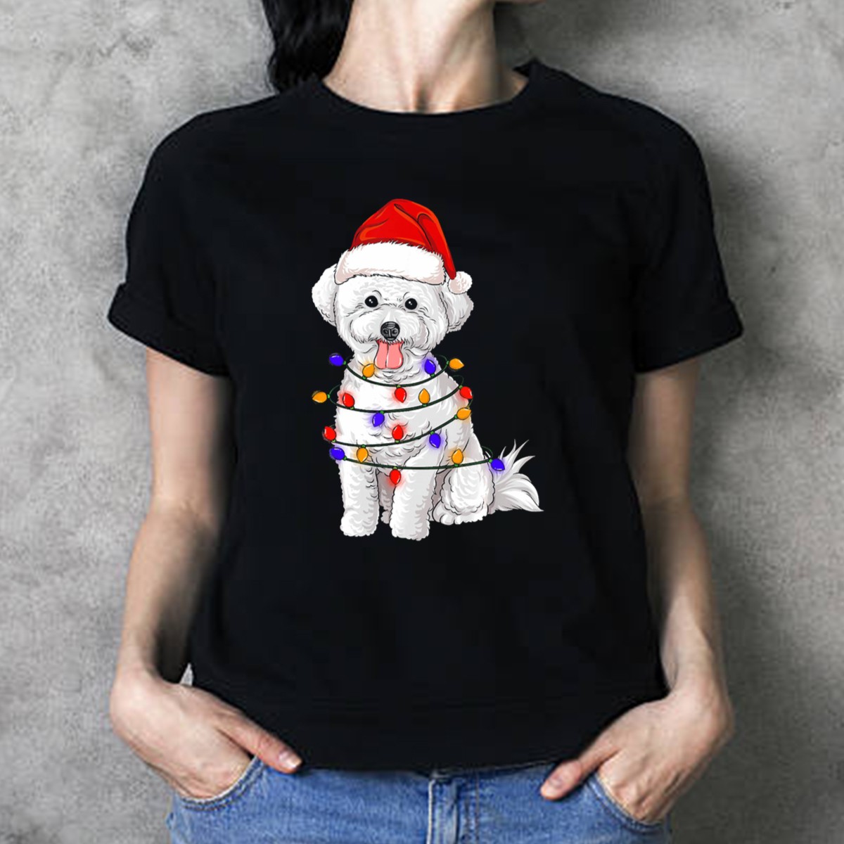 Celebrate the festive season with our charming Bichon Frise With Santa Hat And Christmas Lights T-Shirt! Perfect for dog lovers and holiday enthusiasts alike, this shirt showcases a delightful design that brings joy and cheer to any casual occasion. Whether you’re attending a themed holiday party, enjoying a cozy family gathering, or simply spreading some Christmas spirit, this fan-made graphic tee is sure to become a favorite in your wardrobe. Plus, it’s printed right here in the USA, making it a unique addition to your holiday attire.