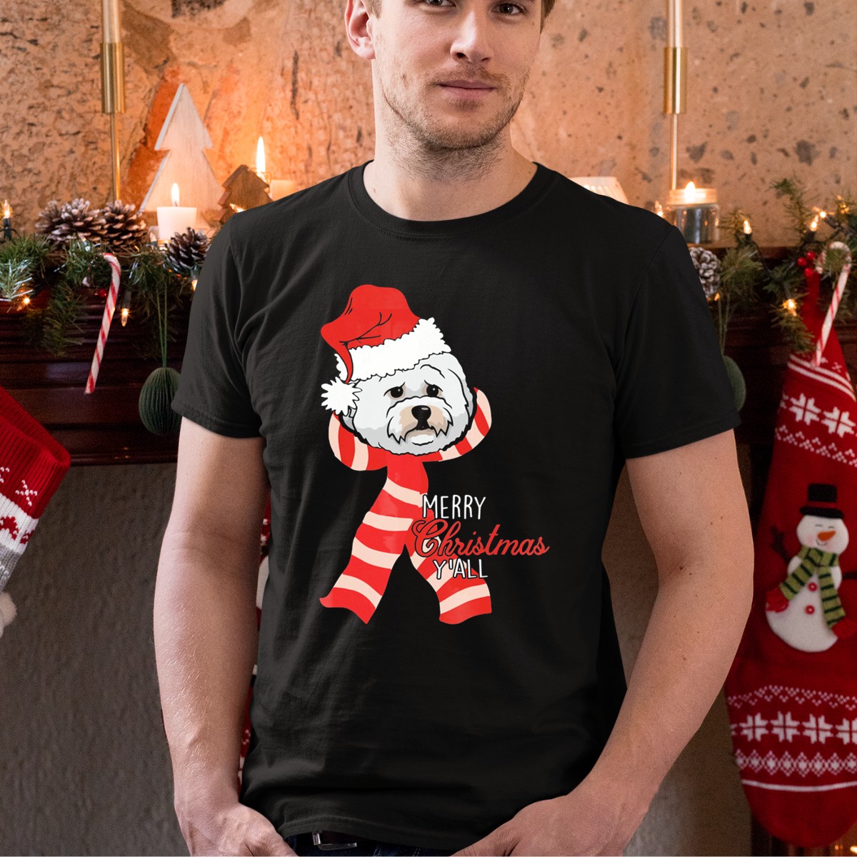 Celebrate the joy of the holiday season with our Bichon Frises Dog Merry Christmas Y’All Santa Hat Red Scarf T-Shirt! This delightful graphic tee is perfect for dog lovers and anyone who wants to spread festive cheer. Made for casual wear, themed events, or simply to brighten up your daily outfits, this shirt showcases an adorable Bichon Frise dressed in a Santa hat and red scarf, making it a unique addition to your wardrobe. Show off your love for these charming pups while staying comfortable and stylish!