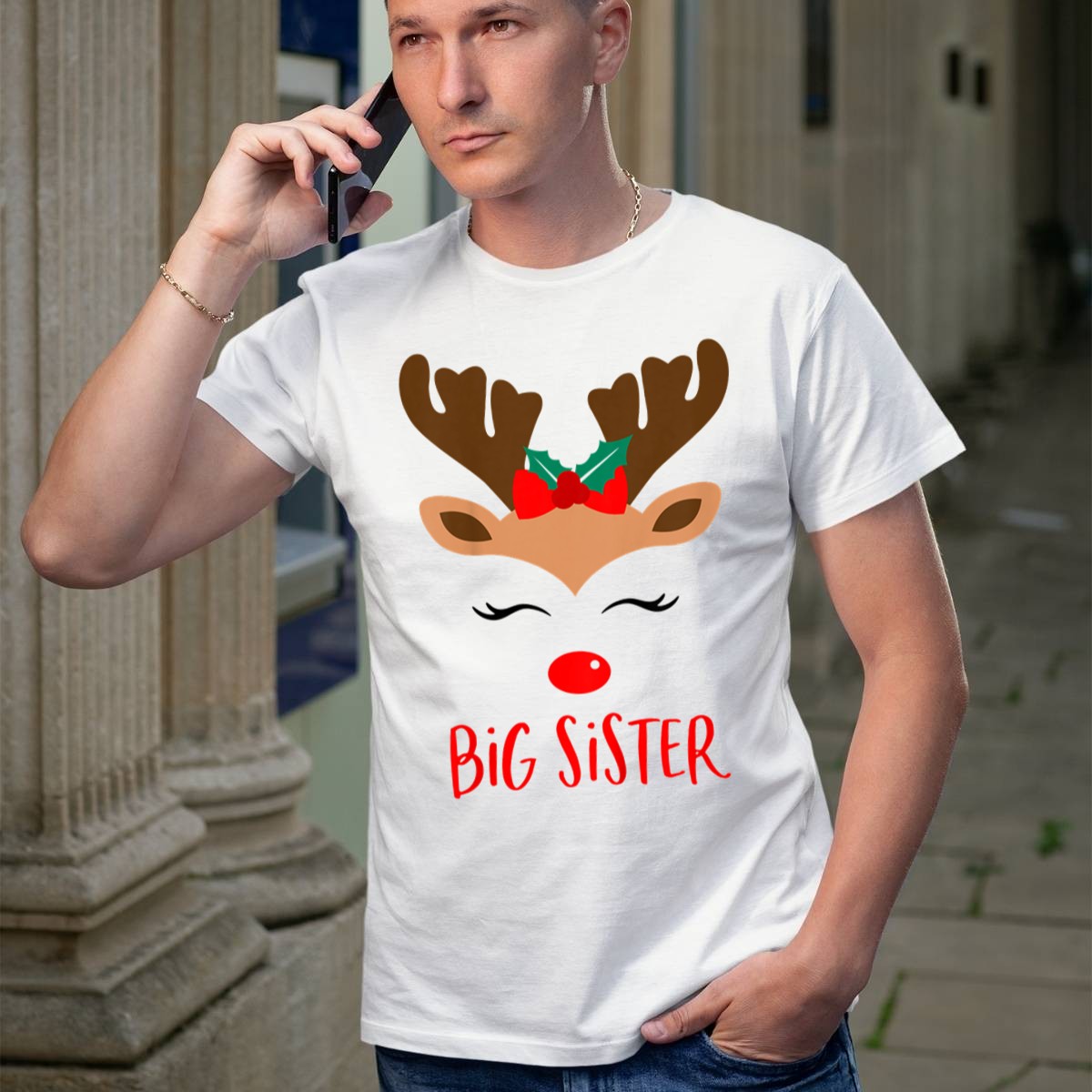 Big Sister Reindeer Christmas Matching Sibling Outfits T Shirt