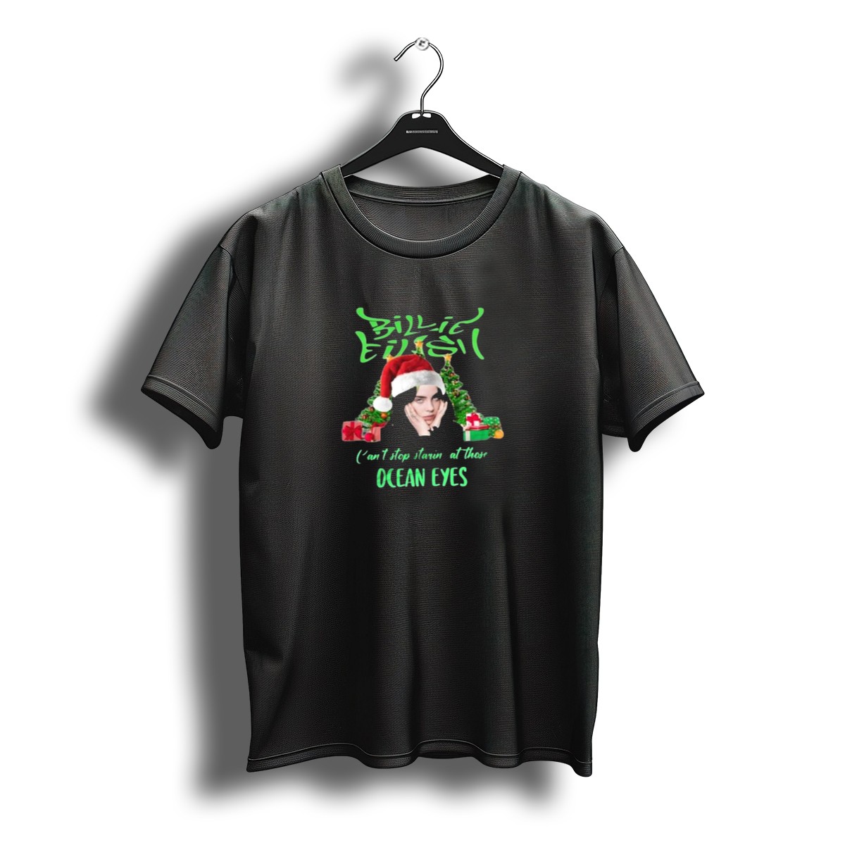 Introducing the Billie Eilish “Can’t Stop Starin’ At Those Ocean Eyes” Christmas 2025 Santa Hat T-Shirt, the perfect addition for fans who want to celebrate the holiday season in style! This playful and unique design captures the essence of Billie Eilish’s iconic aesthetic while bringing a festive twist to your wardrobe. Ideal for casual wear, themed events, or daily outings, this shirt is sure to turn heads and spread holiday cheer wherever you go.