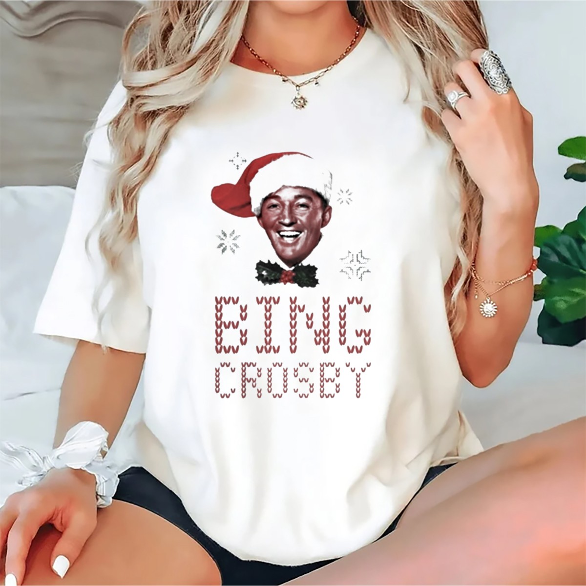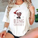 Celebrate the holiday spirit with our Bing Crosby Jolly Christmas Santa Hat Smiling Face T-Shirt! This festive tee is perfect for fans of classic Christmas tunes and those who love to spread cheer during the holiday season. Ideal for casual wear, themed events, or simply brightening up your daily outfit, this fan-made design captures the joy of Christmas, making it a unique addition to your wardrobe. Printed in the USA, it combines comfort with a touch of nostalgia!