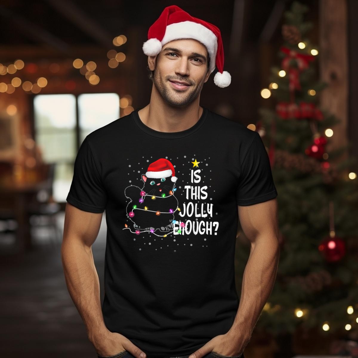 Get ready to spread some holiday cheer with our Black Cat Santa Hat Fairy Lights T-Shirt! Perfect for cat lovers and festive souls, this whimsical tee captures the spirit of the season with its charming design. Whether you’re attending a casual family gathering, a themed Christmas party, or just enjoying daily wear during the holidays, this shirt is sure to make you the center of attention. Made with care in the USA, this fan-made design combines comfort and style, making it a unique addition to your festive wardrobe.