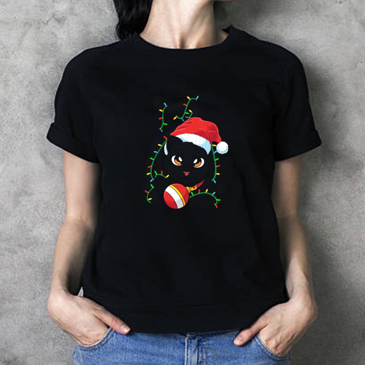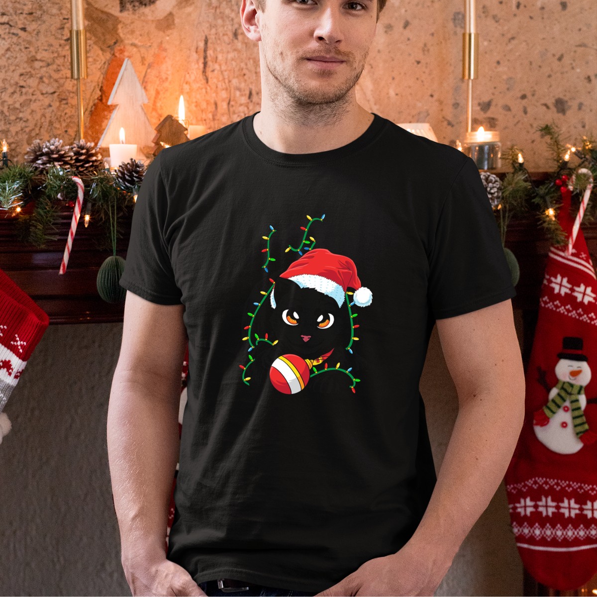 Celebrate the holiday season in style with our Black Cat Santa Tangled Up In Christmas Lights T-Shirt! Perfect for cat lovers and festive spirits alike, this playful design features an adorable black cat caught in a whimsical tangle of Christmas lights, all while sporting a cheerful Santa hat. Ideal for casual wear, themed events, or simply spreading holiday cheer, this shirt is sure to become a favorite in your winter wardrobe. Plus, it’s fan-made and printed right here in the USA, making it a unique addition to your holiday attire.