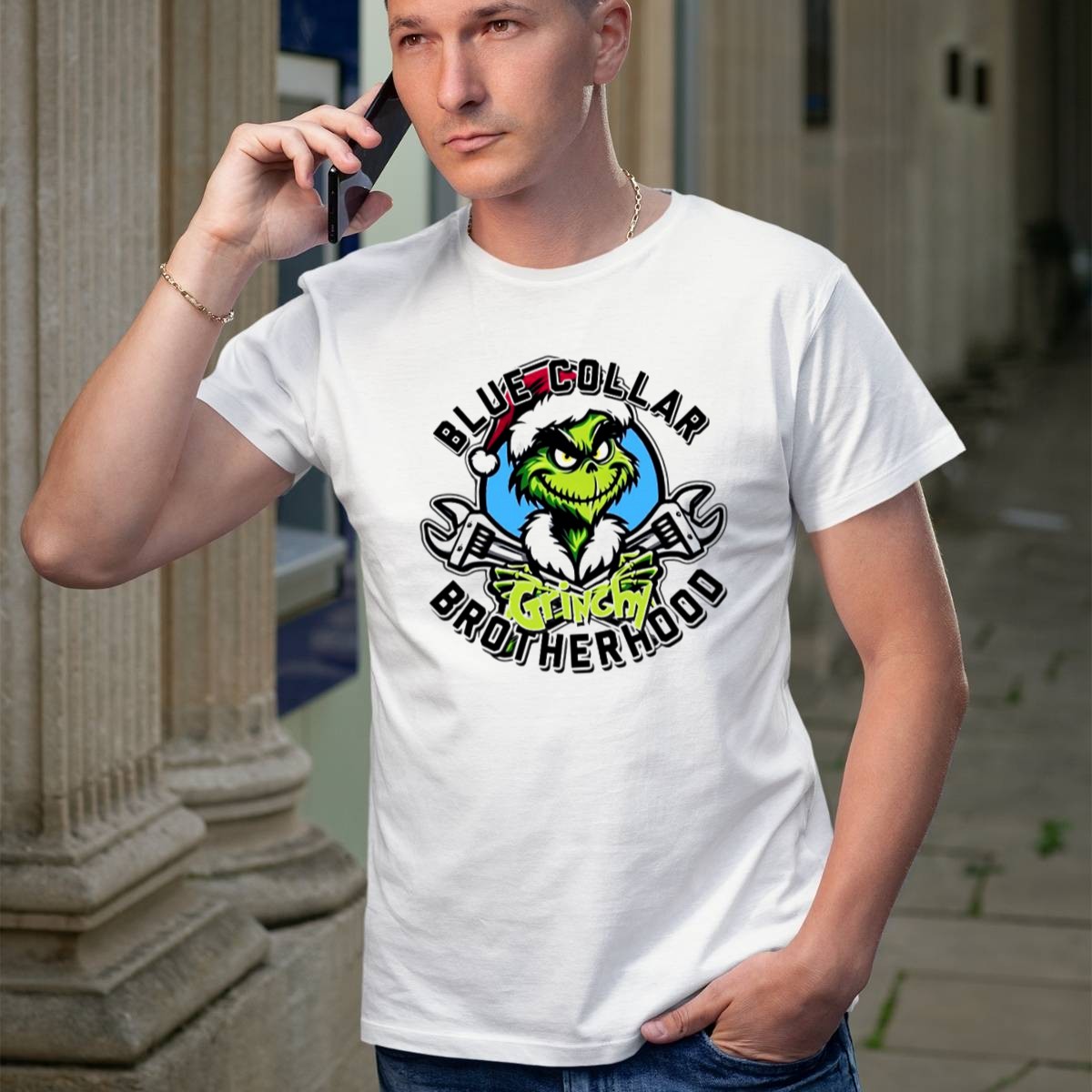 Embrace the holiday spirit with our Blue Collar Grinchy Brotherhood Merry Christmas T-Shirt! Perfect for fans of the classic Grinch tale, this shirt is designed for those who love to celebrate the season with a touch of humor. Whether you’re attending a festive gathering, lounging at home, or participating in themed events, this unique fan-made design will make you stand out. Printed in the USA, it combines comfort and style, ensuring you spread cheer wherever you go.
