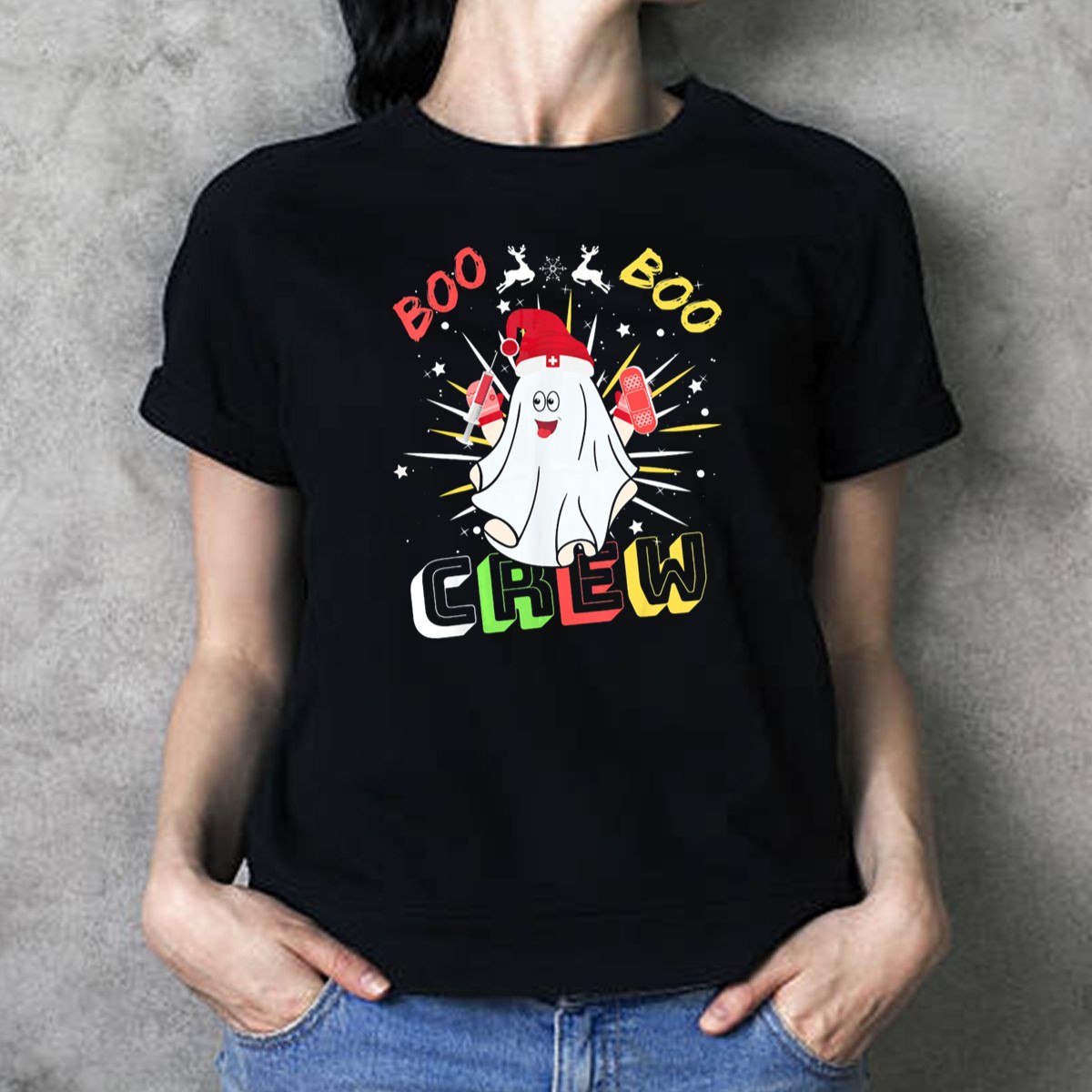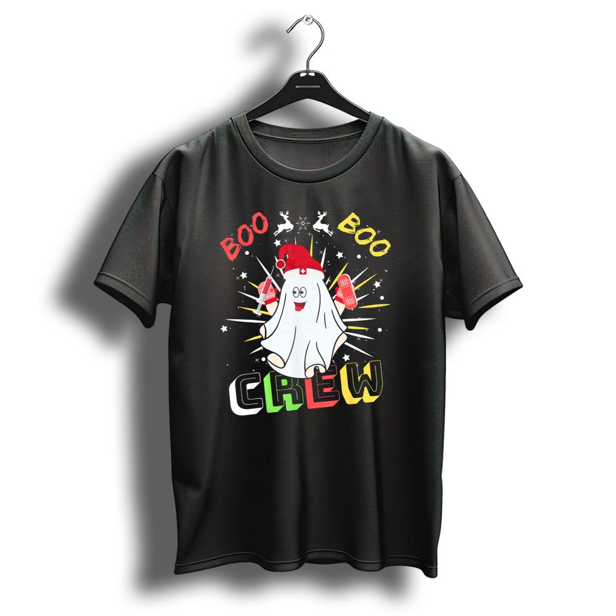 Be the first to review “Boo Boo Crew Christmas Nurse Ghost With Bandages And Reindeer T-Shirt”