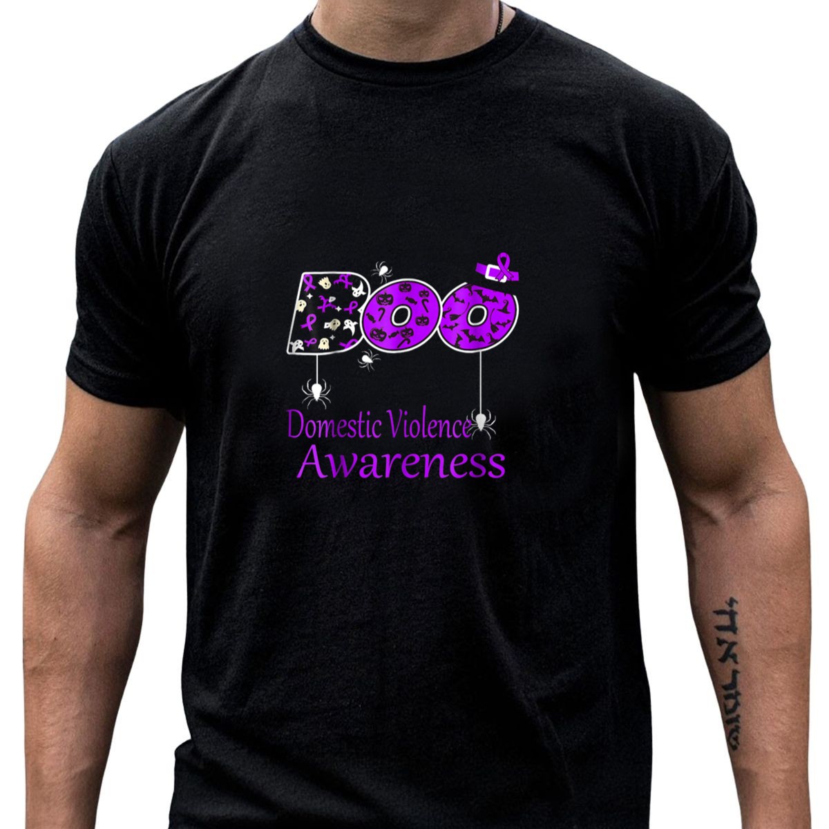 Be the first to review “Boo Domestic Violence Awareness With Witch Hat And Halloween Icons T-Shirt”