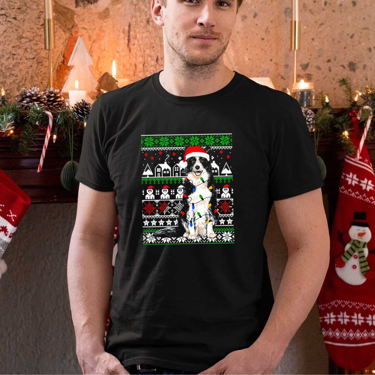 Border Collie Christmas Lights Santa Hat Festive T Shirt